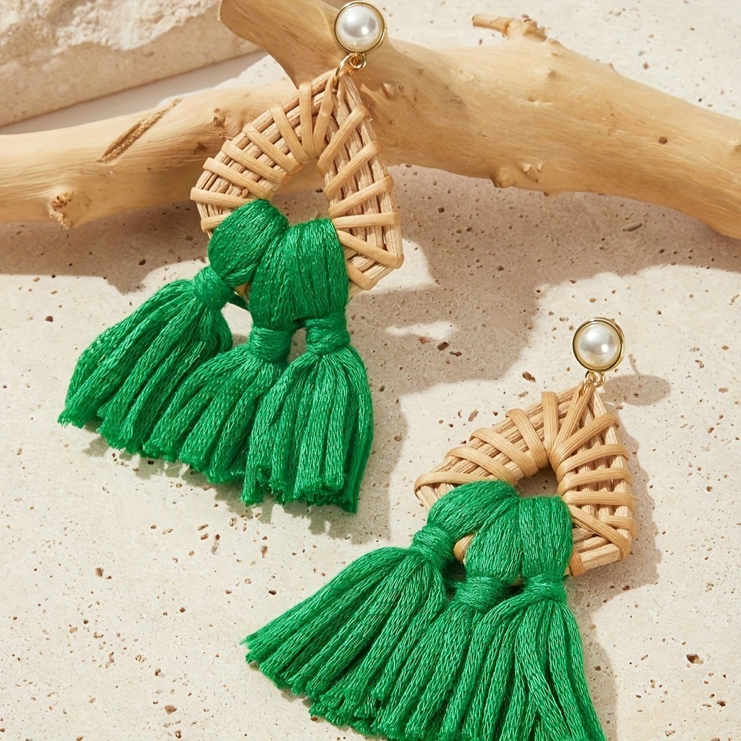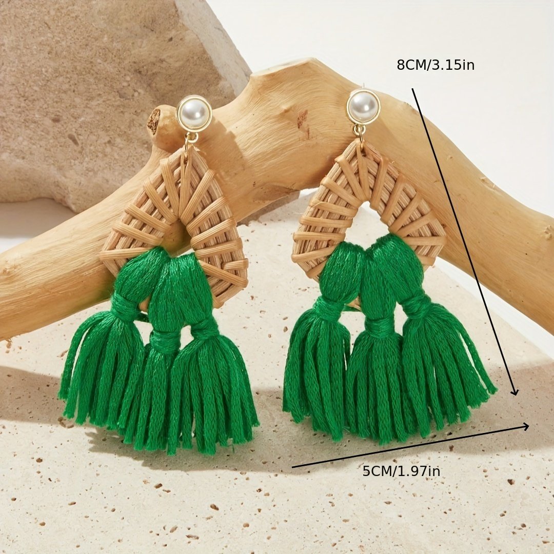 Brincos de Borla de Vime Feitos à Mão Em Estilo Boêmio, Joias Pendentes Com Inspiração nas Férias para Mulheres, Acessórios para Orelha.