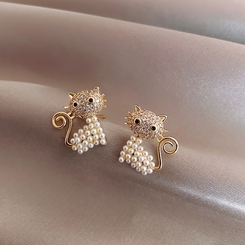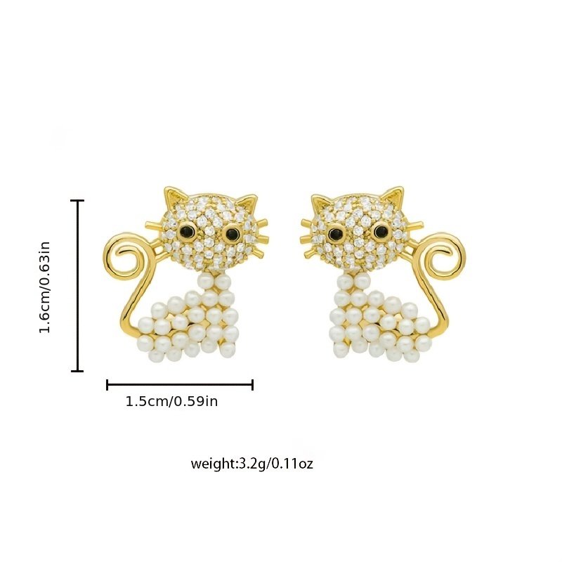 Brincos de Gato Luxuosos Com Zircônias Cúbicas - Pino Em Prata 925, Design Com Strass Brilhantes para Mulheres | Perfeitos para Festas e Presentes, Brincos de Gato.