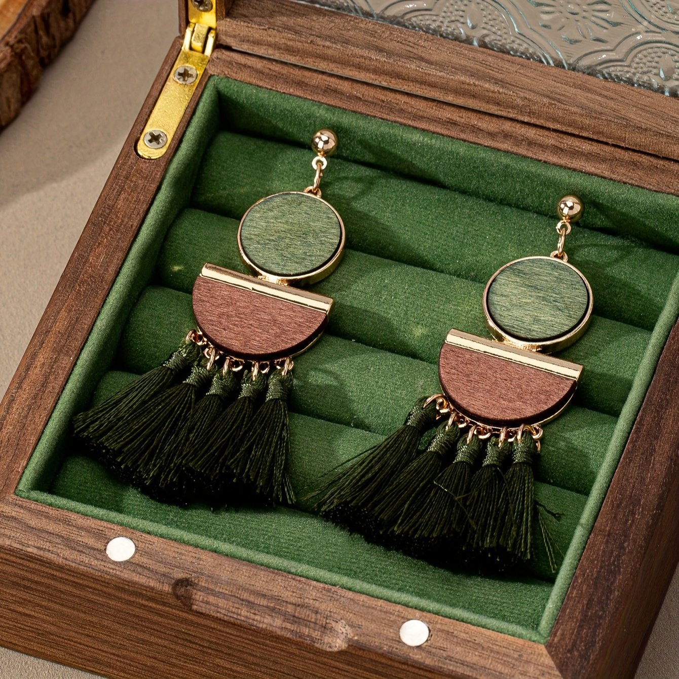 Início Vestuário e Acessórios Bijouterias Brincos de Madeira Artesanais, Modernos, Elegantes e Minimalistas, Com Design Exclusivo, Adequados para o Dia a Dia. Estes Brincos Longos Com Borla, Versáteis e de Alta Qualidade, Exalam Um Charme Sofisticado.