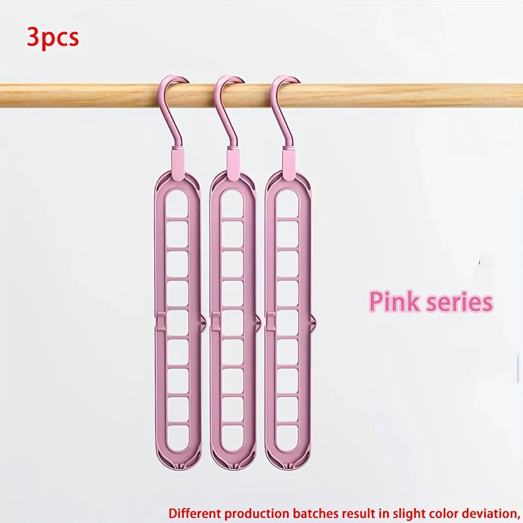 Cabides Dobráveis de Plástico Que Economizam Espaço, Organizador de Roupas, Cabides Resistentes para Armário de Quarto Guarda-roupa Casa e Dor, 9 Buracos, 3 Peças.