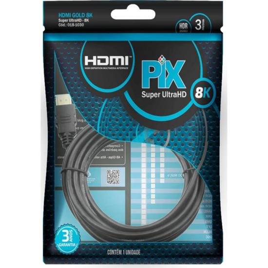 O cabo HDMI da marca Pix, é um produto de qualidade superior, possuindo pontas gold que previnem a oxidação durante o uso. Disponíveis em diversas metragens.