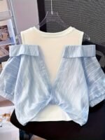 Blusa de Verão Feminina Estilosa Falso Duas Peças Gola Polo Blusas Y2k Topos Streetwear Solto Juventude Pulôveres Camisa Elegante.