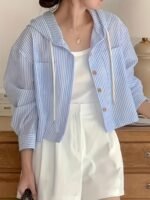 Especificações: Estilo da Gola: Com Capuz Composição: 100% Poliéster Detalhes: Cordão Elasticidade do Tecido: Sem Elasticidade Material: Poliéster Instruções de Uso: Lavar à Máquina, Não Lavar a Seco Estampa: Listras Tipo de Impressão: Sem Impressão Estações: Todas Transparência: Não Estilo: Elegante Tipo: Camisa Método de Tecelagem: Tecido