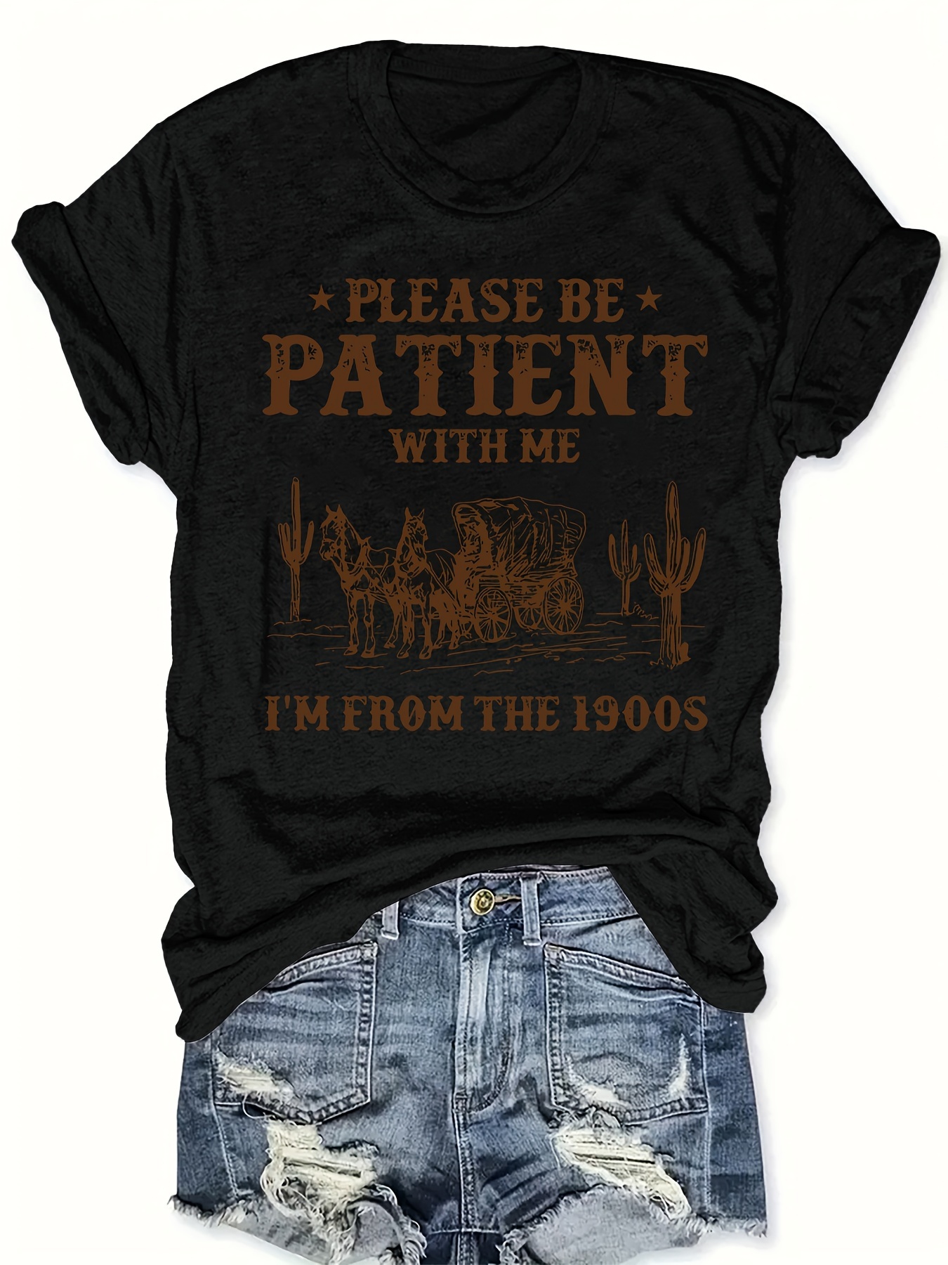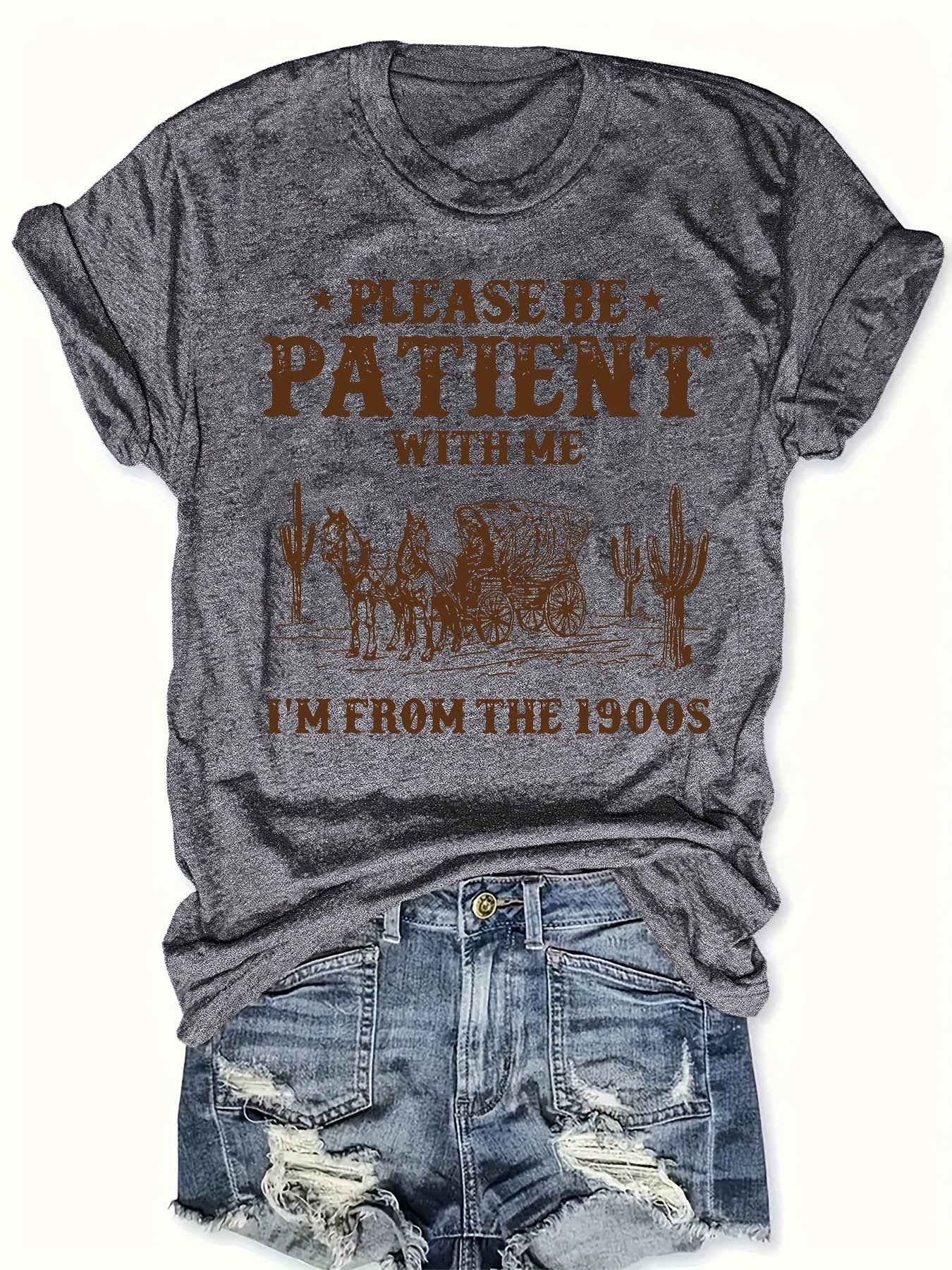 Camiseta Feminina Plus Size e/ou OverSized Fashion Com Estampa de Letras, Manga Curta e Gola Redonda, Estilo Casual.