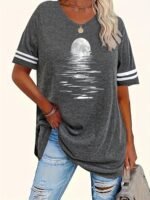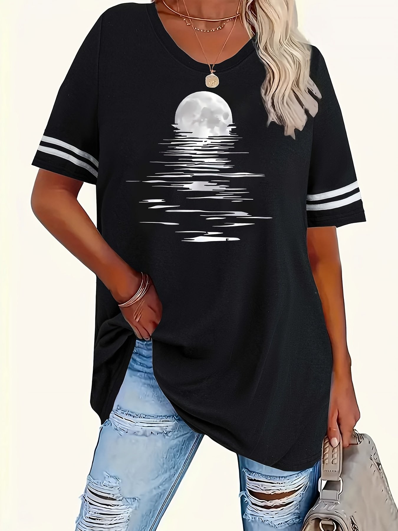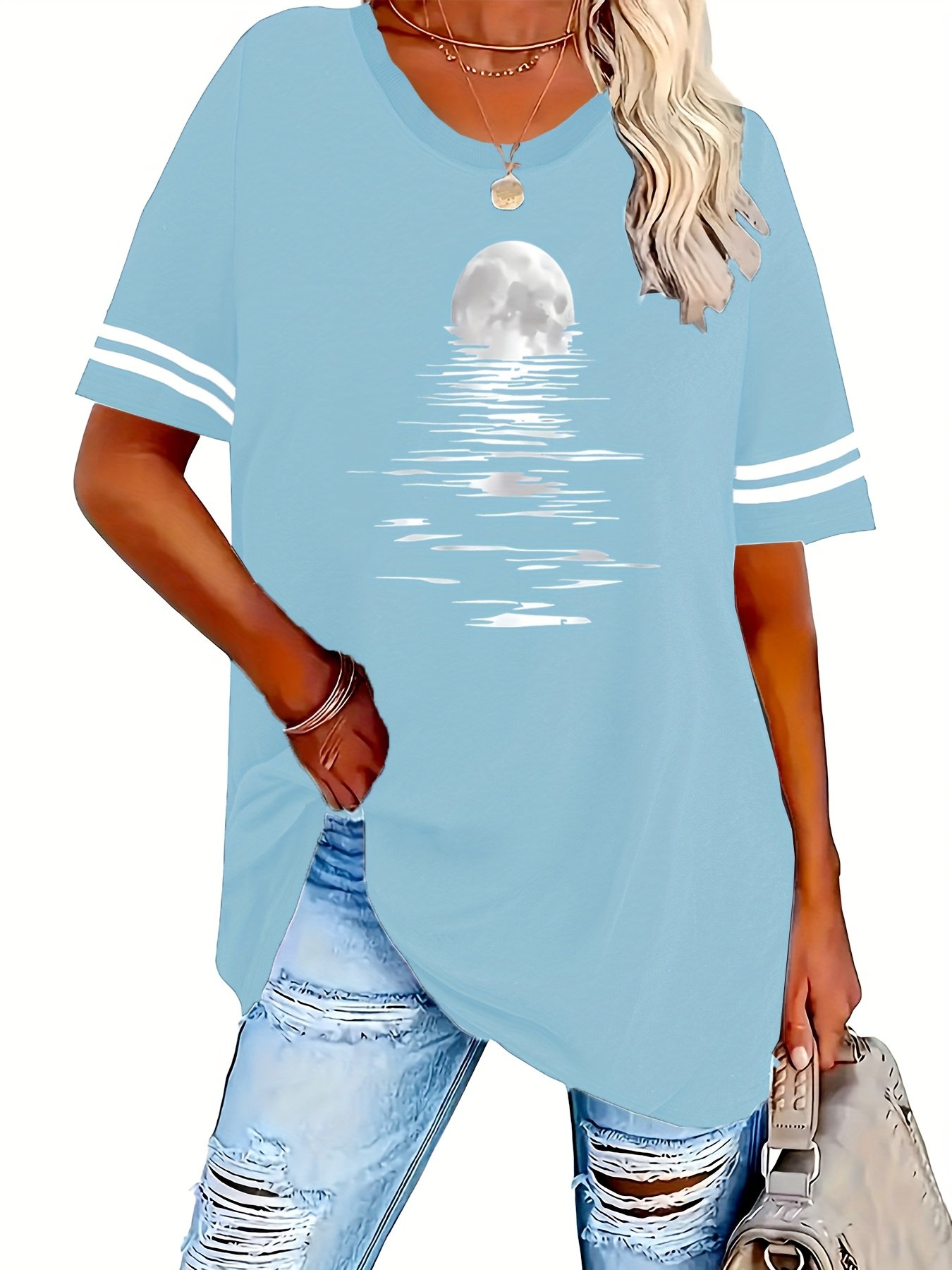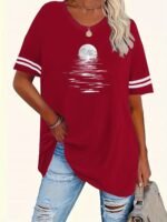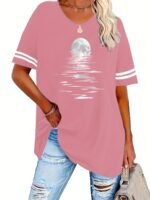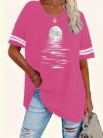 Camiseta Feminina Plus Size E/ou Oversized Fashion Tamanhos Grandes – Estampada C/ Gola Redonda, Manga Curta e Listras, Disponível nos Tamanhos 1 a 8 XL, Com Estampas de Desenhos Animados.