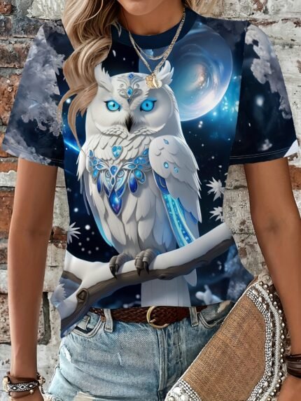 Camiseta Feminina Plus Size e/ou OverSized Fashion Com Estampa de Gato, Manga Curta, Gola Redonda, Tecido Composto por 95% Algodão e 5% Elastano, Perfeita para Atividades Ao Ar Livre e Viagens.