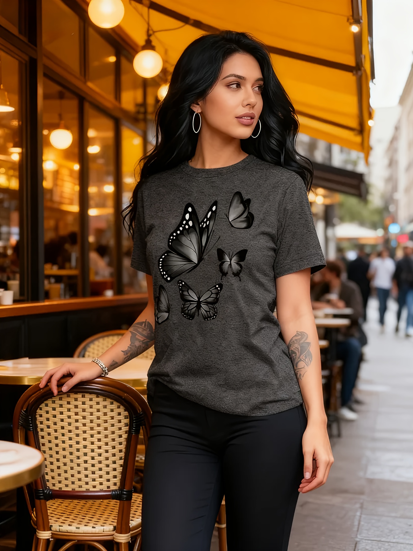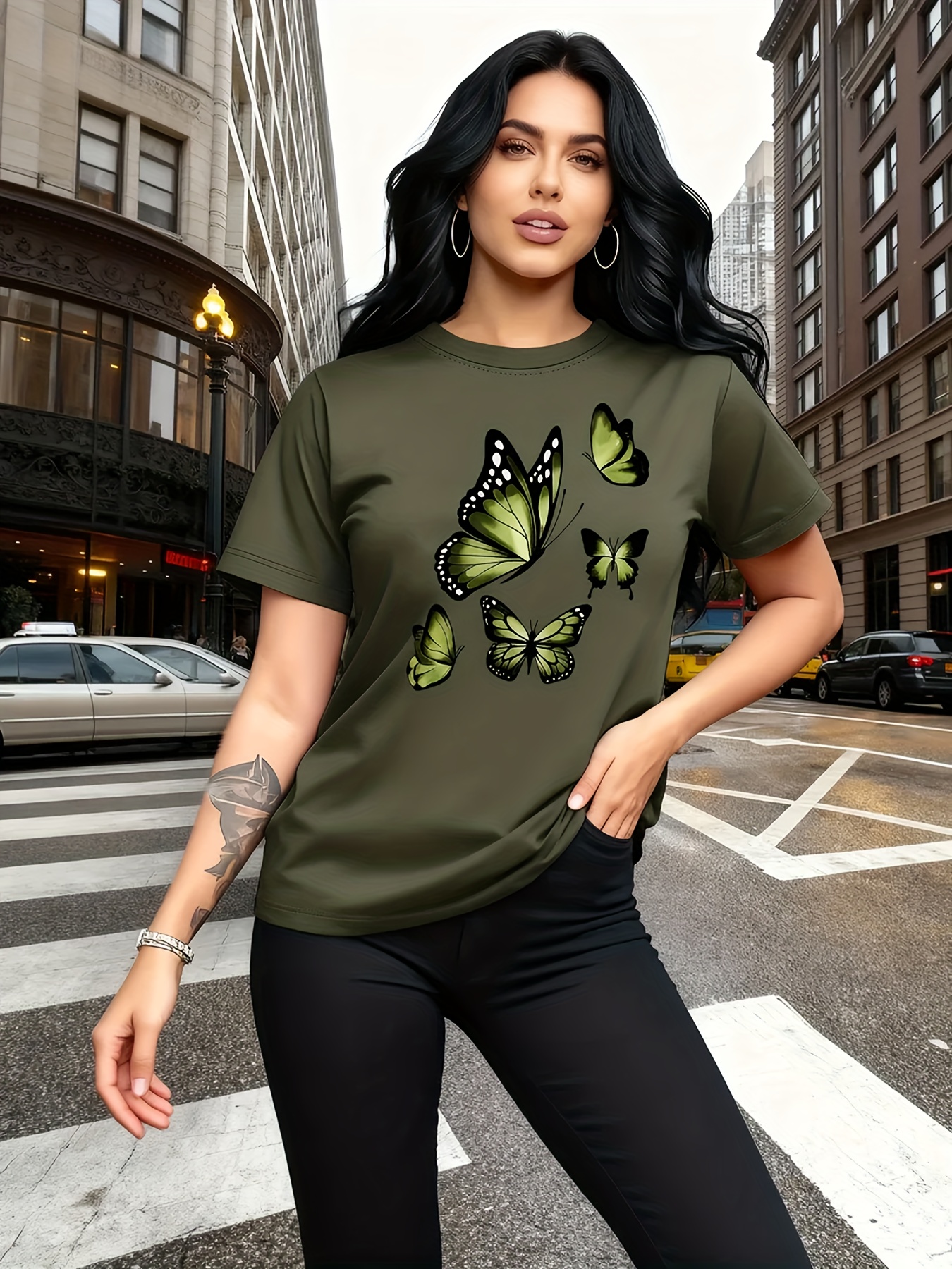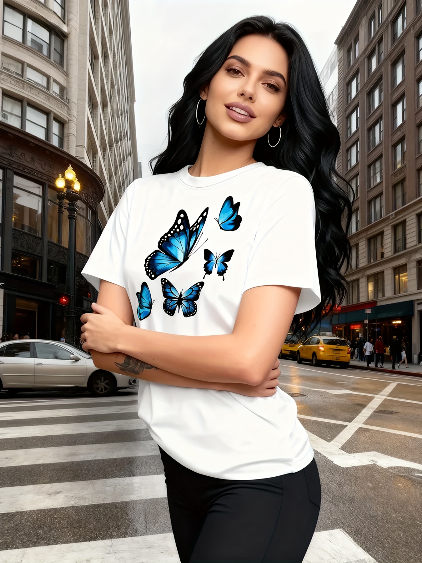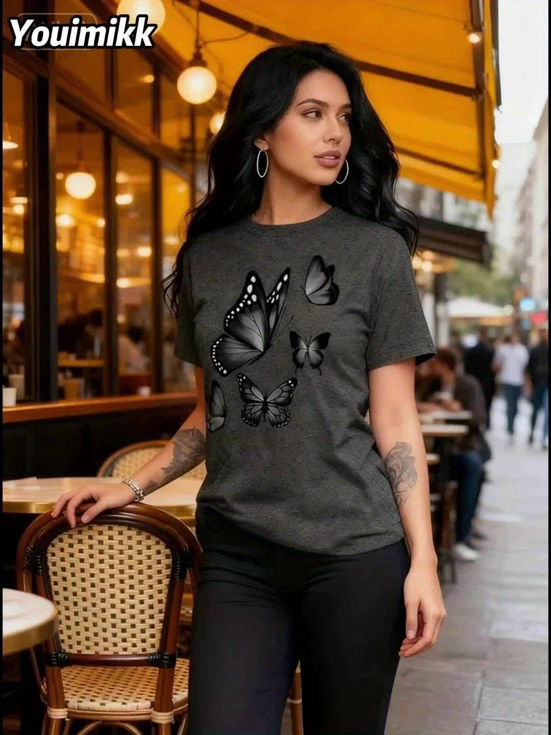 Camiseta Feminina Com Estampa de Árvore Borboleta Harajuku, Gola Redonda, Manga Curta, Casual.