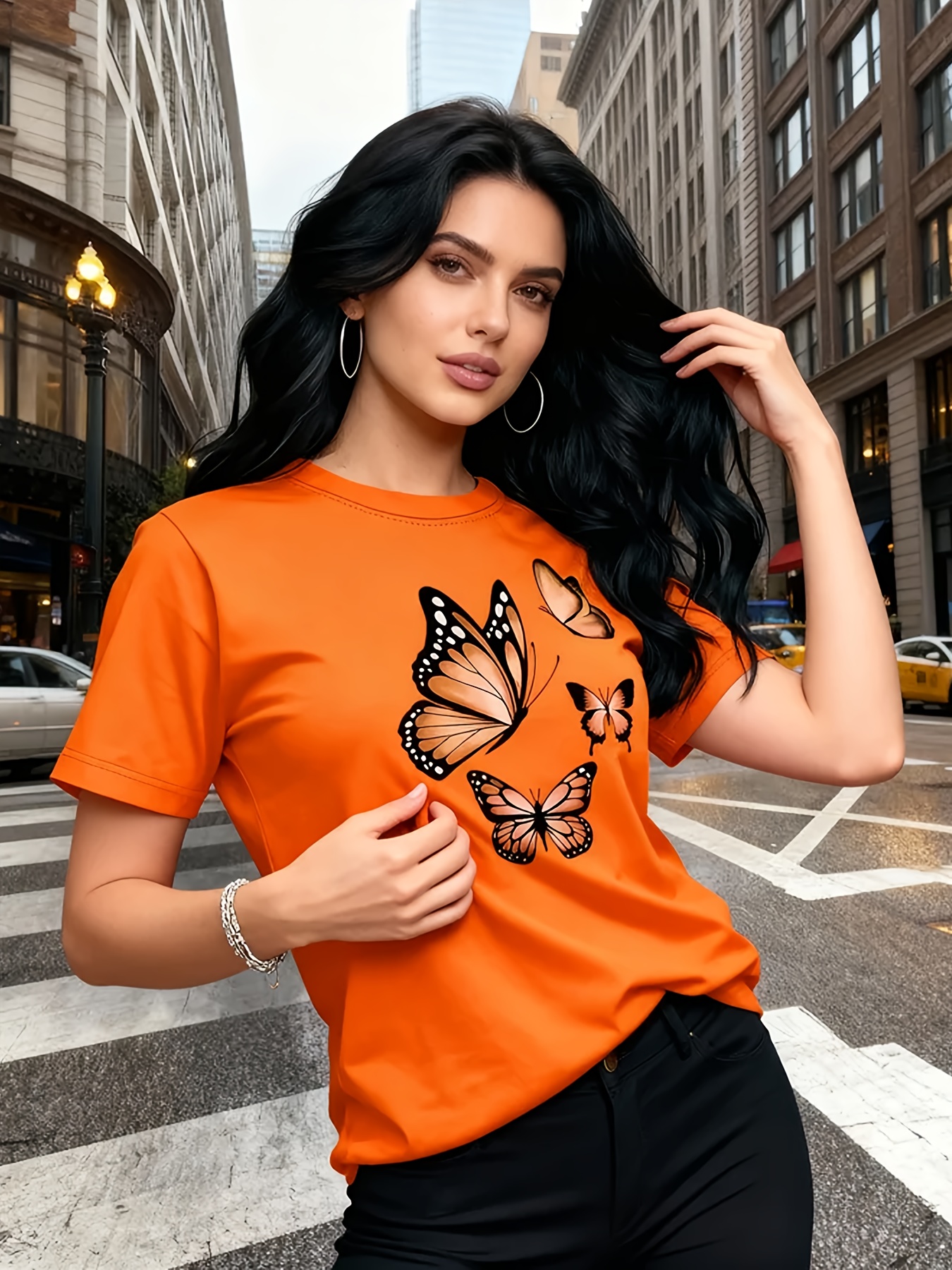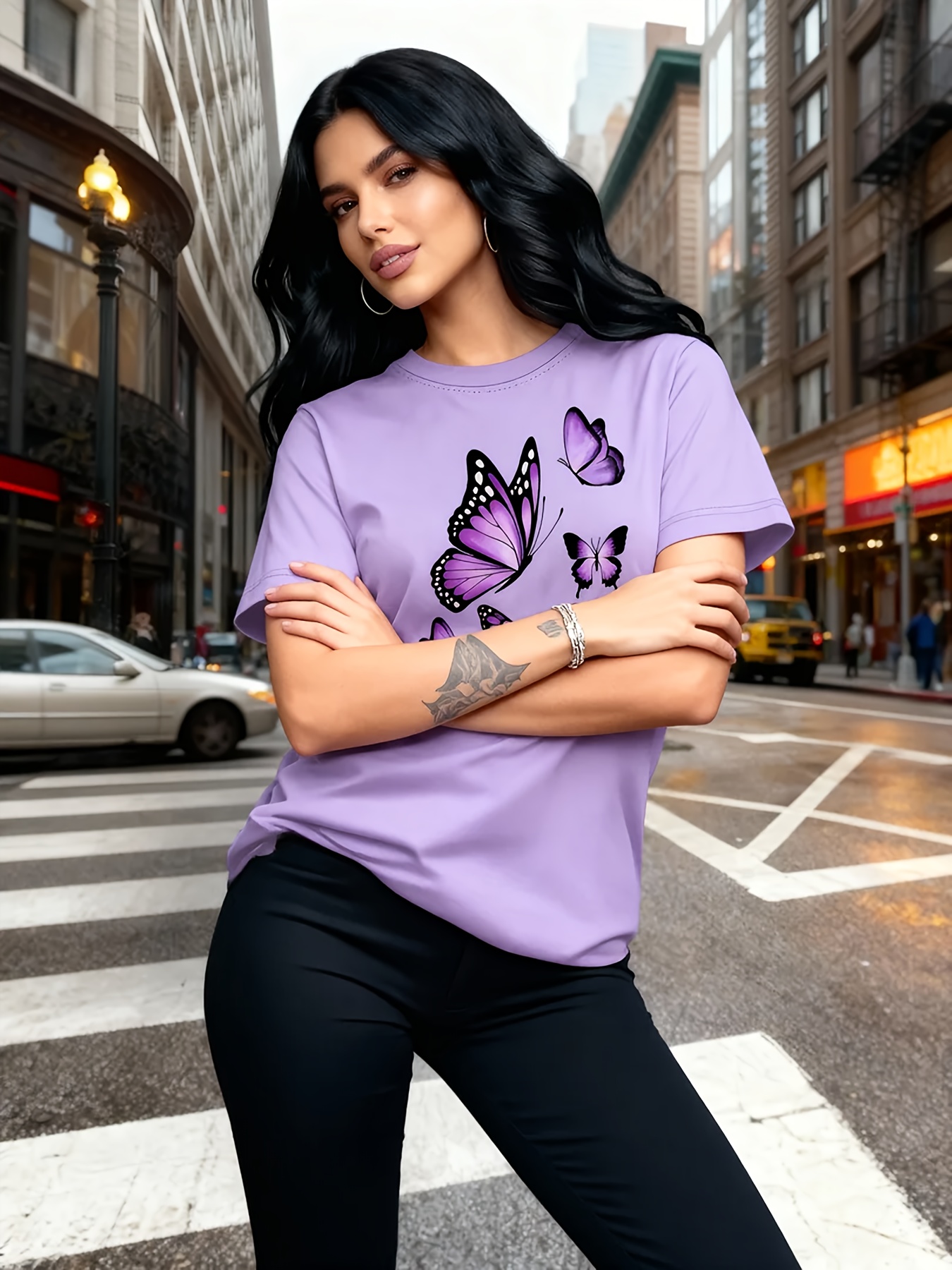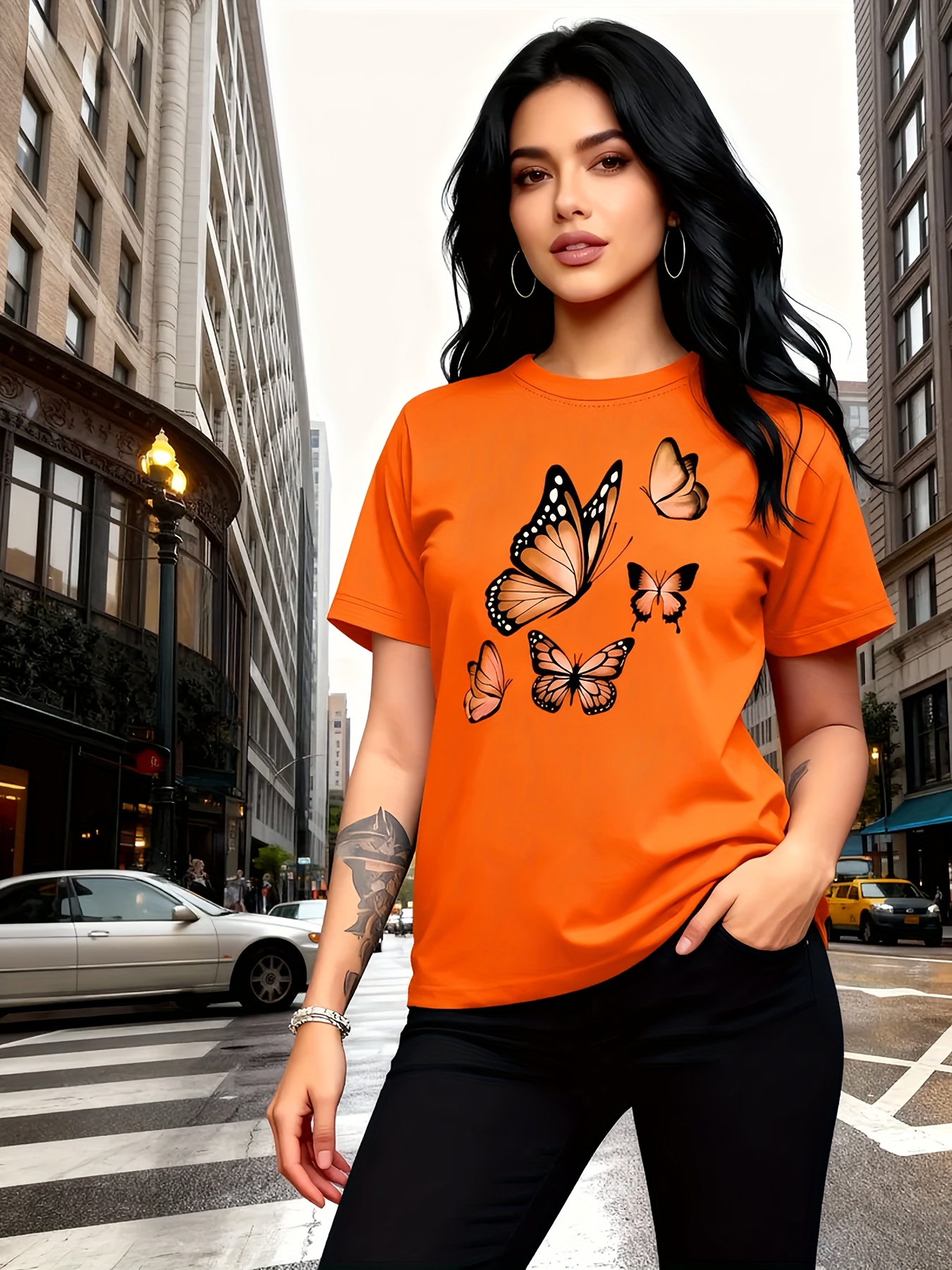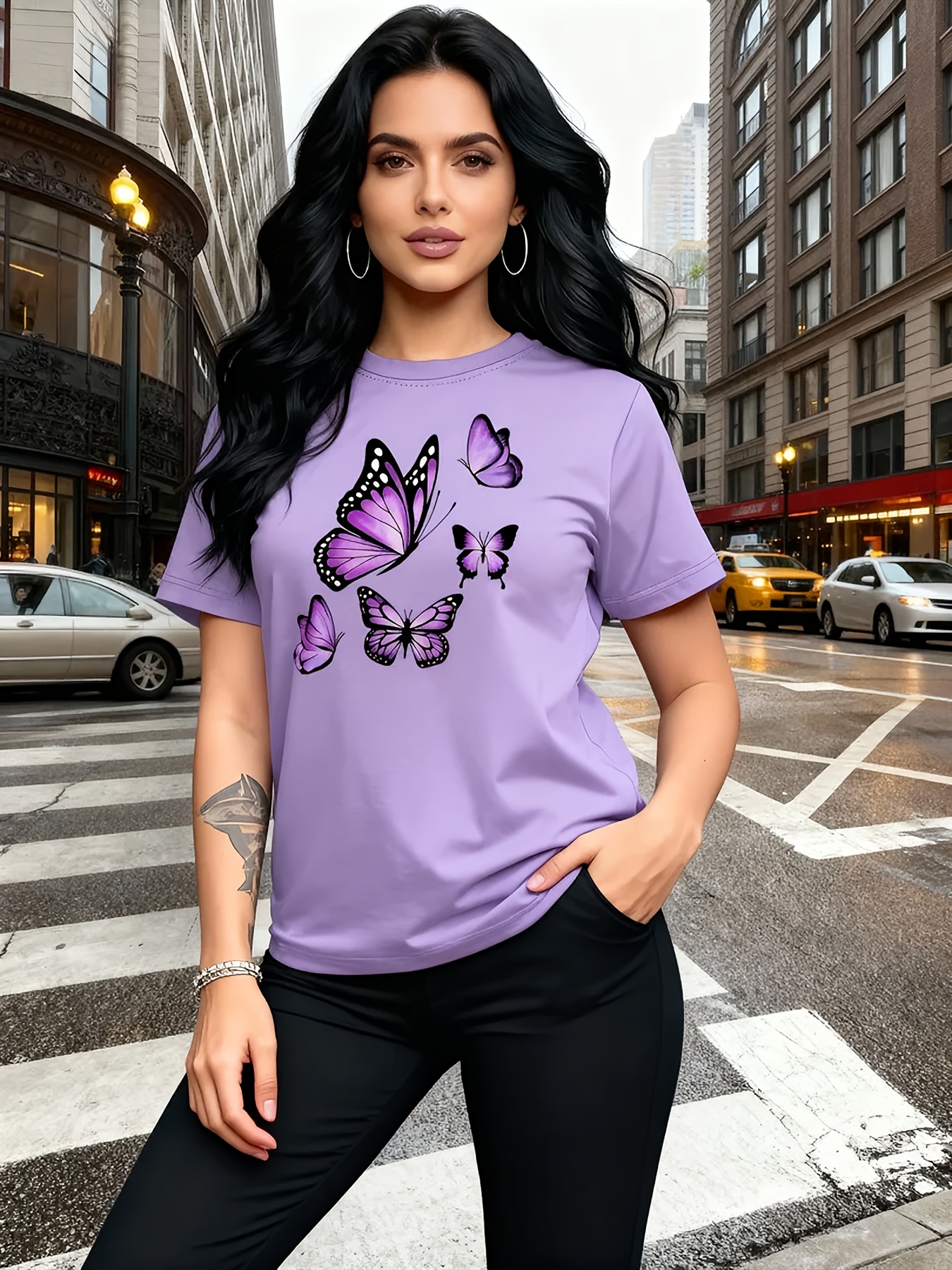 Camiseta Feminina Com Estampa de Árvore Borboleta Harajuku, Gola Redonda, Manga Curta, Casual.