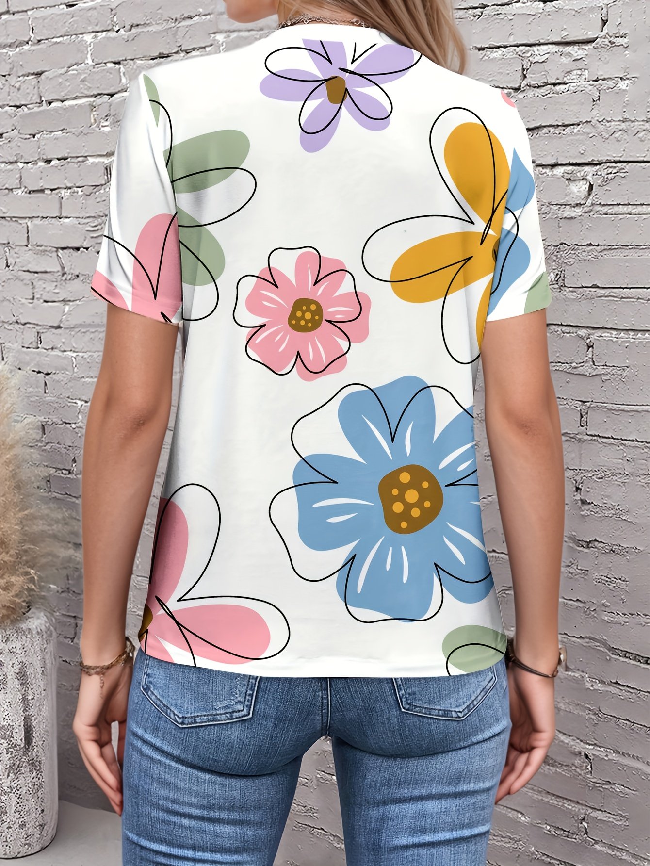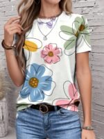 Especificações: Estilo da Gola: Gola Redonda Composição: 95% Poliéster; 5% Elastano Tecido: Levemente Elástico Elasticidade do Tecido: Microelasticidade Comprimento: Regular Material: Poliéster Instruções de Lavagem: Lavar à Máquina ou a Seco Profissional Estampa: Floral Tipo de Estampa: Estampa Posicionada Estação: Primavera / Verão / Outono / Inverno Transparência: Não Comprimento da Manga: Manga Curta Método de Tecelagem: Malha
