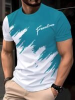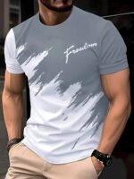 Camiseta Plus Size Masculina Estilo Parisiense Com Efeito Degradê – Feita Em 100% Algodão, Com Gola Redonda e Mangas Curtas, Lavável à Máquina. Caimento Confortável para Todas as Estações, Tecido Macio, Perfeita para Uso Casual. Peça Versátil | Design Degradê | Textura Macia.