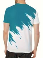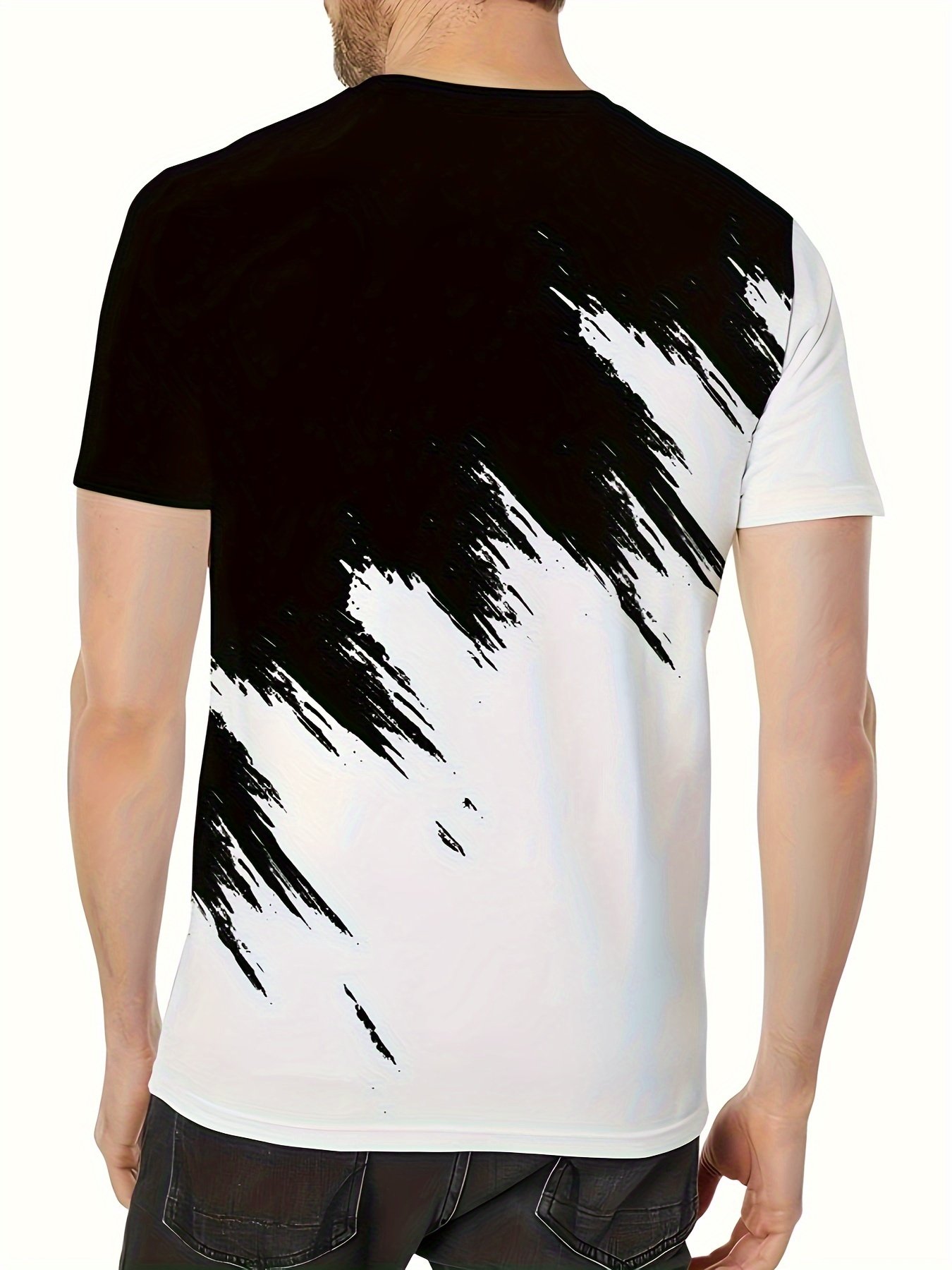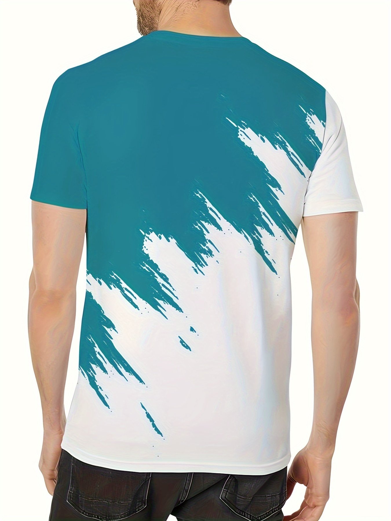 Camiseta Plus Size Masculina Azul e Preta Com Estampa Geométrica de Bolinhas – Tecido Elástico Confortável, Gola Redonda, Manga Curta, Lavável à Máquina, Ideal para Looks Casuais e Presentes de Fim de Ano, Camiseta Casual | Estilo Casual Moderno | Blusa Lavável à Máquina.