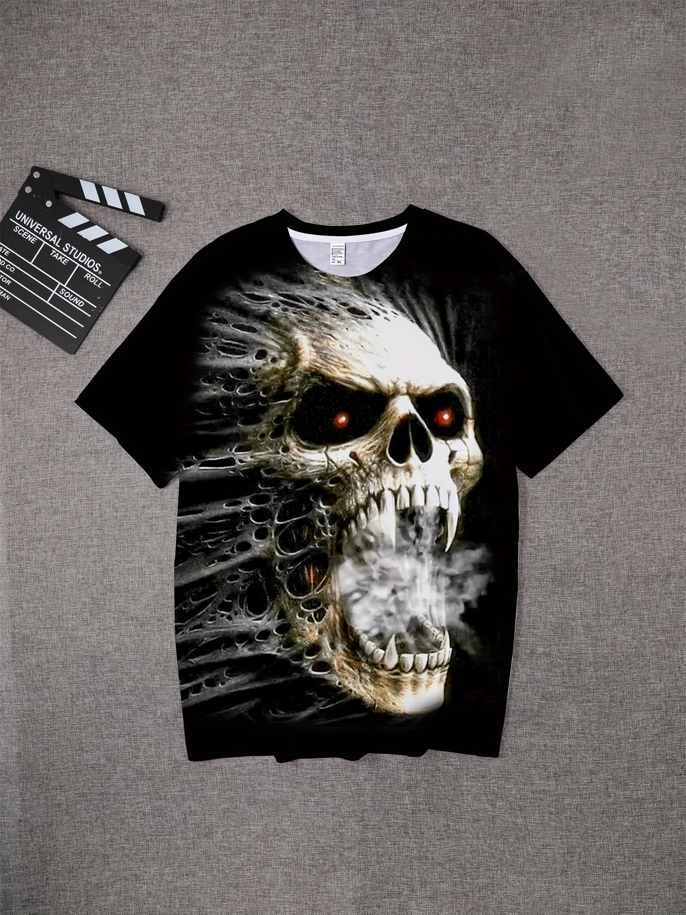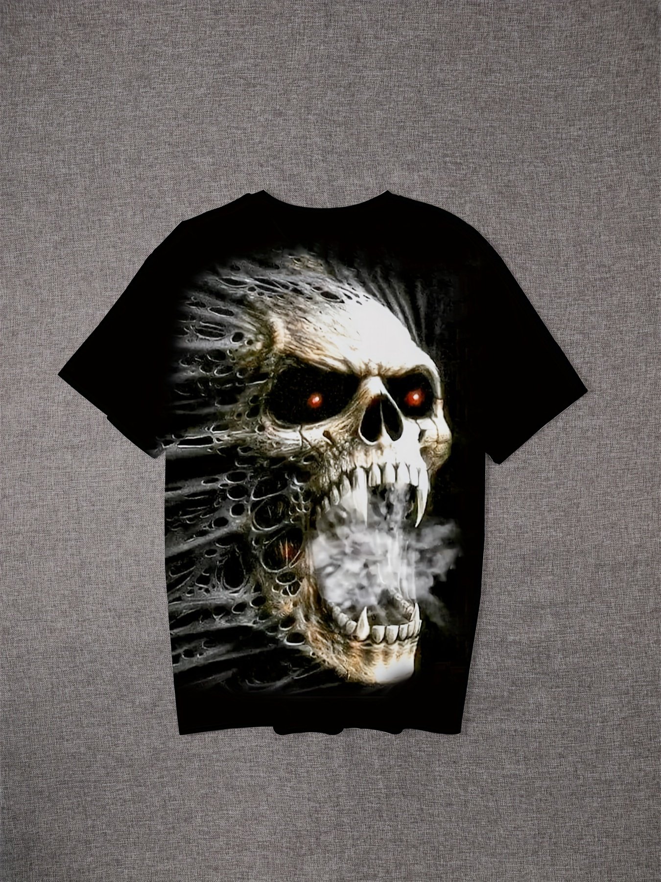 Camiseta Plus Size Masculina Com Estampa de Caveira Assustadora, Camiseta Casual de Manga Curta e Modelagem Ampla, Estilo Hip-Hop Streetwear, Peça de Roupa Masculina.