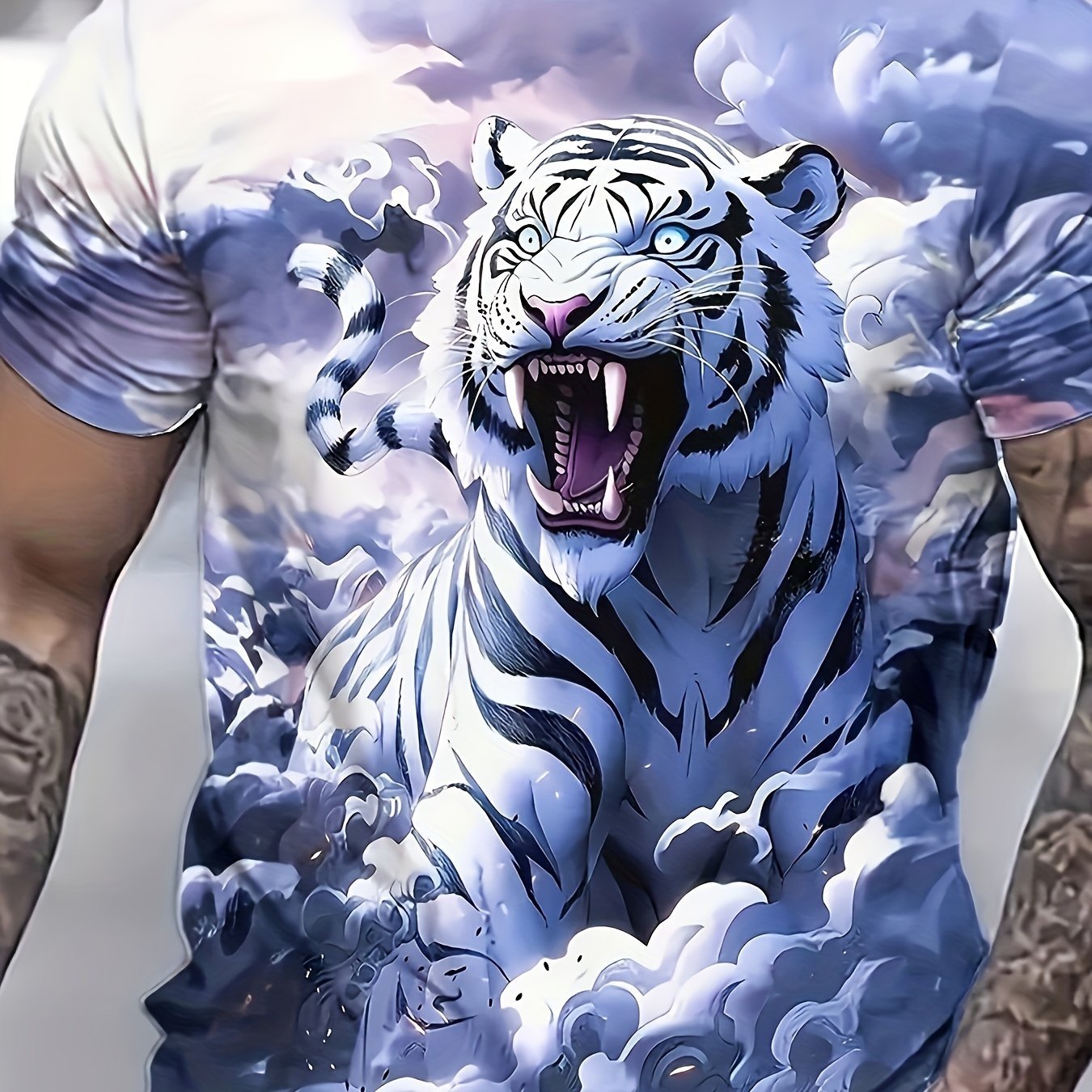 Camiseta Plus Size Masculina de Manga Curta Com Estampa 3d de Tigre, Modelagem Ampla e Casual, Com Um Design Arrojado.