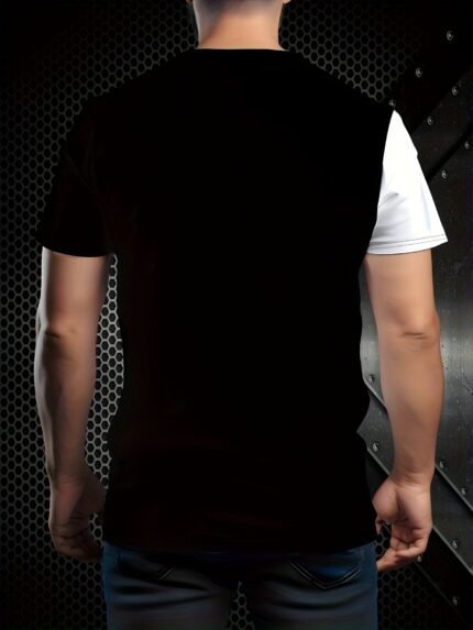 Camiseta Plus Size Masculina Azul e Preta Com Estampa Geométrica de Bolinhas – Tecido Elástico Confortável, Gola Redonda, Manga Curta, Lavável à Máquina, Ideal para Looks Casuais e Presentes de Fim de Ano, Camiseta Casual | Estilo Casual Moderno | Blusa Lavável à Máquina.