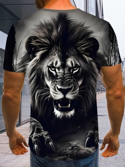 Camiseta Plus Size Com Estampa de Leão Em 3D, Blusa Casual Feminina e Masculina, Estilo Urbano.