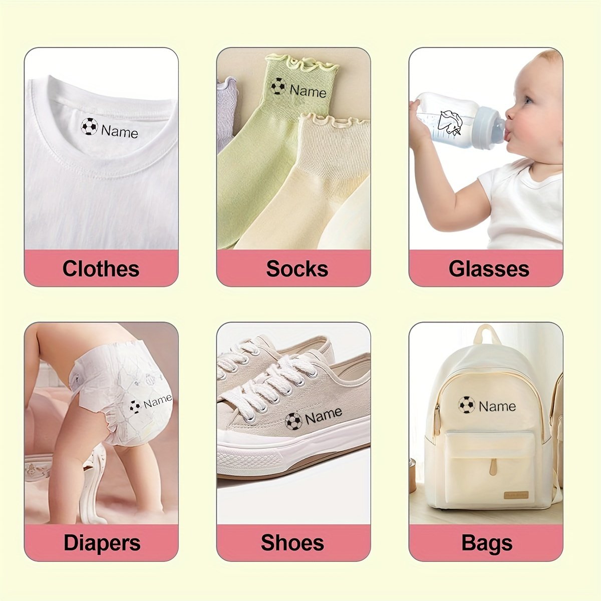 Carimbo de Nome para Roupas à Prova D'água, Carimbos de Roupas para Roupas Permanentes, Carimbo Personalizado Com Nome, Itens Essenciais para Creche Escolar para Garrafas de Plástico Com Etiqueta de Tecido, Carimbos de Roupas à Prova D'água, Personalizados, Itens Essenciais para Creche Escolar.