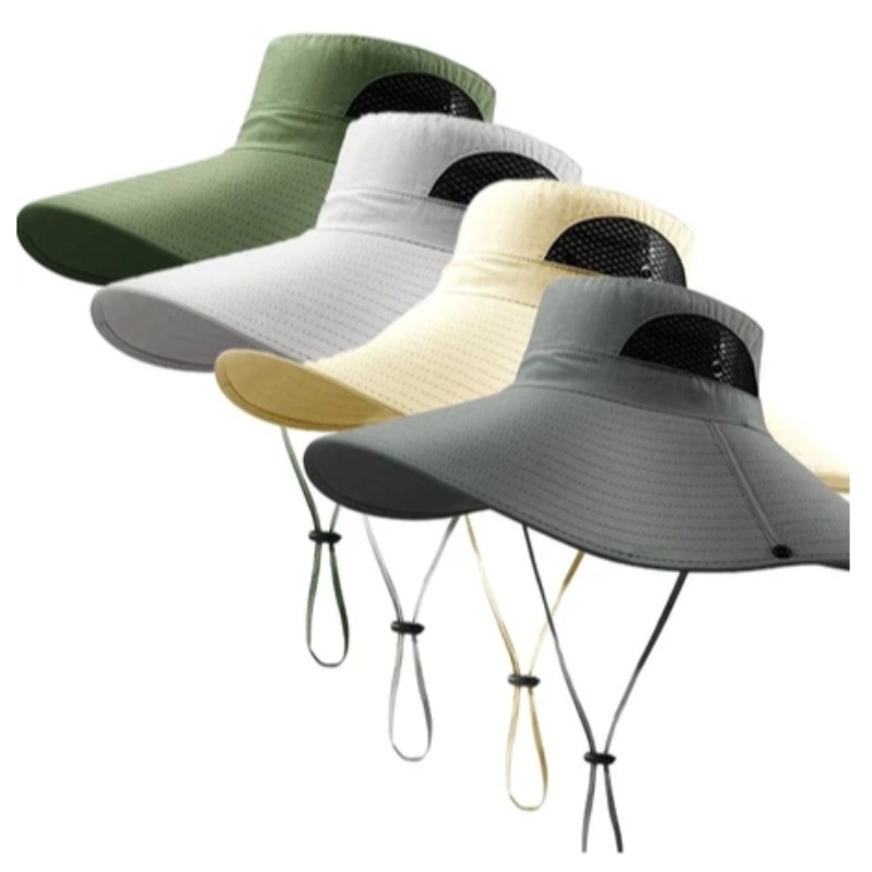Chapéu de Sol Unissex de Primavera / Verão / Outono / Inverno – Malha de Poliéster Respirável, Aba Larga de 15cm, Proteção Solar Externa.