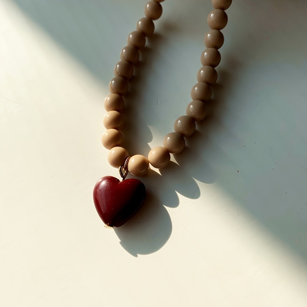 • Brown pearl wine red heart