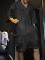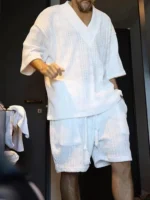 Início Vestuário Masculino Shorts Masculinos Conjunto Casual Solto Gradual dos Homens Design Moderno e Estiloso.