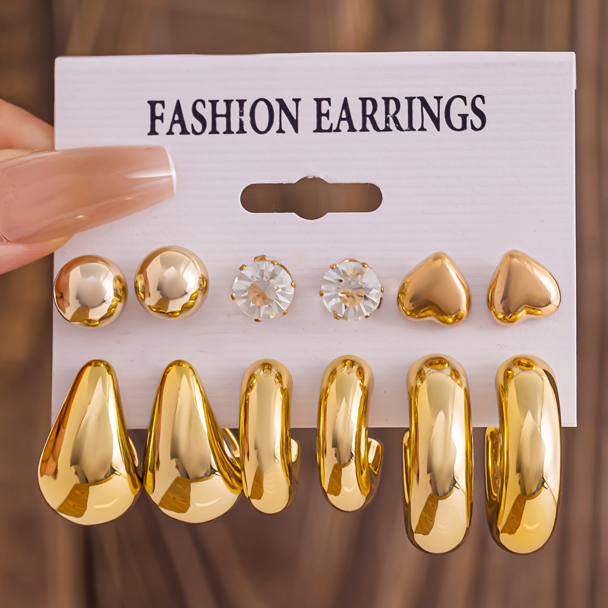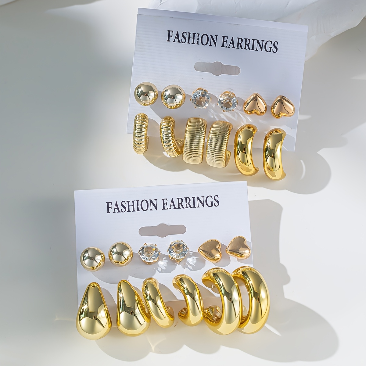 Início Vestuário e Acessórios Bijouterias Conjunto de 12 a 24 Peças de Brincos Novos de Pérolas Artificiais Em Formato de Coração Com Cristais, Em Resina Banhada a Ouro, Com Design Em Formato de C.