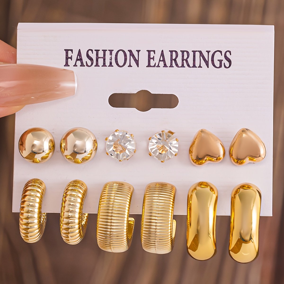 Início Vestuário e Acessórios Bijouterias Conjunto de 12 a 24 Peças de Brincos Novos de Pérolas Artificiais Em Formato de Coração Com Cristais, Em Resina Banhada a Ouro, Com Design Em Formato de C.