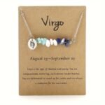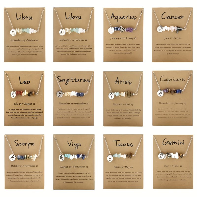 Conjunto de 12 Colares Com Pedras de Nascimento do Zodíaco, Estilo Boho e Simples, Pingente de Aço Inoxidável Com Contas de Pedra Natural, Joias Femininas da Moda para Uso Diário e Festas, Inclui Cartão de Presente – Compatível Com Todas as Estações.