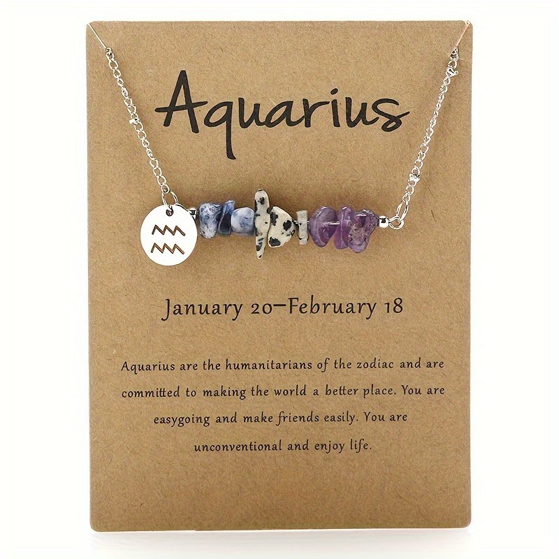 Conjunto de 12 Colares Com Pedras de Nascimento do Zodíaco, Estilo Boho e Simples, Pingente de Aço Inoxidável Com Contas de Pedra Natural, Joias Femininas da Moda para Uso Diário e Festas, Inclui Cartão de Presente - Compatível Com Todas as Estações.