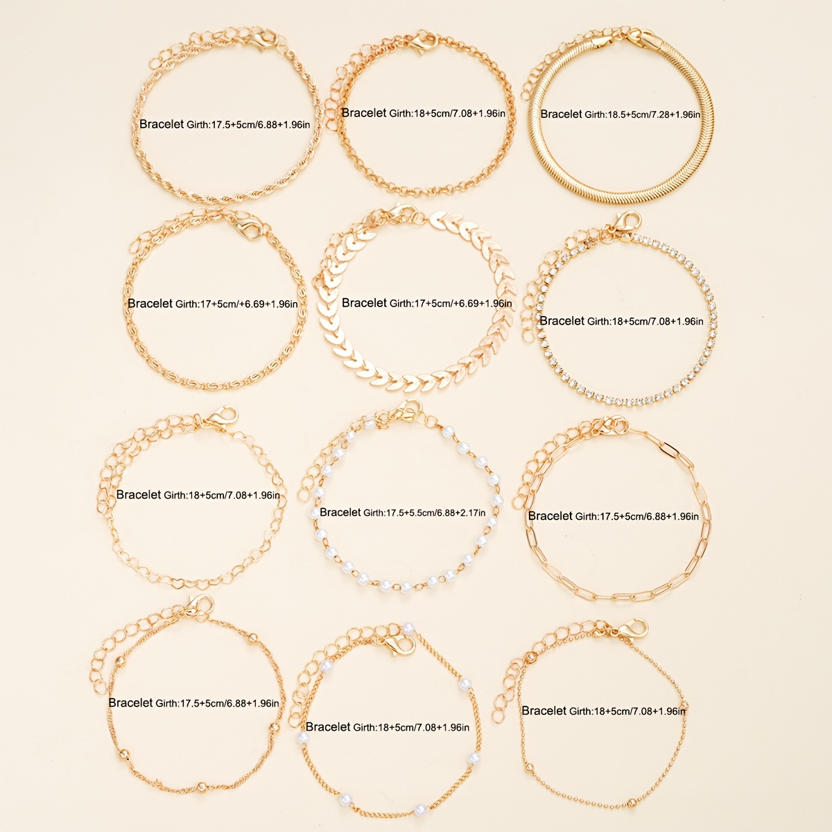 Início Vestuário e Acessórios Bijouterias Conjunto de 12 Pulseiras Elegantes Douradas Com Pingente de Coração e Corrente de Contas para Mulheres – Perfeito para Encontros, Feriados e para o Dia a Dia, Acessório Versátil para Todas as Estações, Conjunto de Pulseiras para o Dia a Dia | Conjunto de Acessórios Chiques | Liga de Zinco Durável.