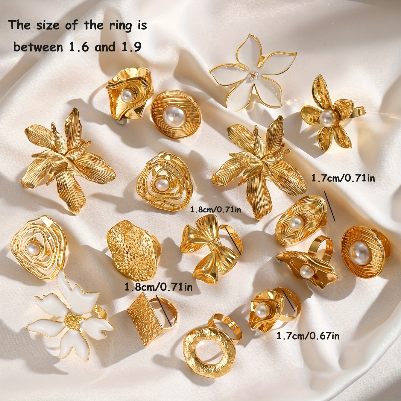 Conjunto de 15/11/7 Anéis Vintage Elegantes Em Estilo Boêmio Com Laço Falso Exagerado Em Metal, Formato Quadrado, Semicírculo e Linhas Irregulares Geométricas. Anéis Vazados Elegantes e Personalizados para Mulheres, Ideais para Férias de Verão, Festas, Encontros, Uso Diário e Aniversários.