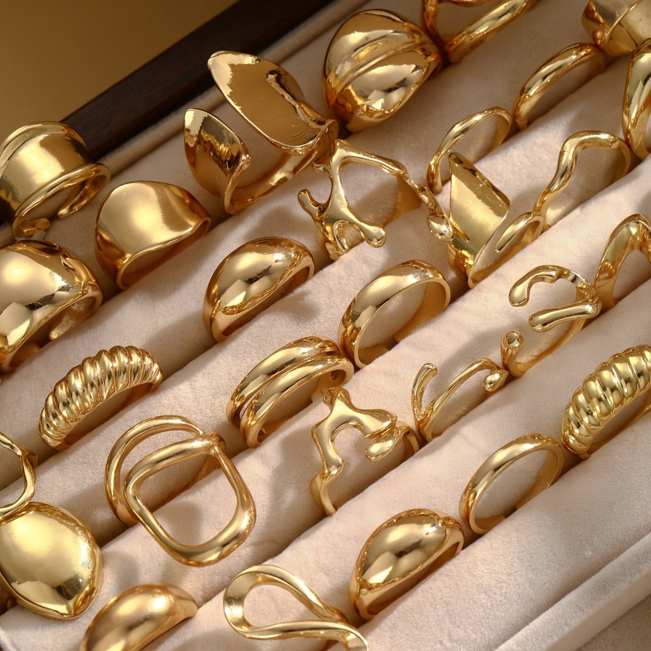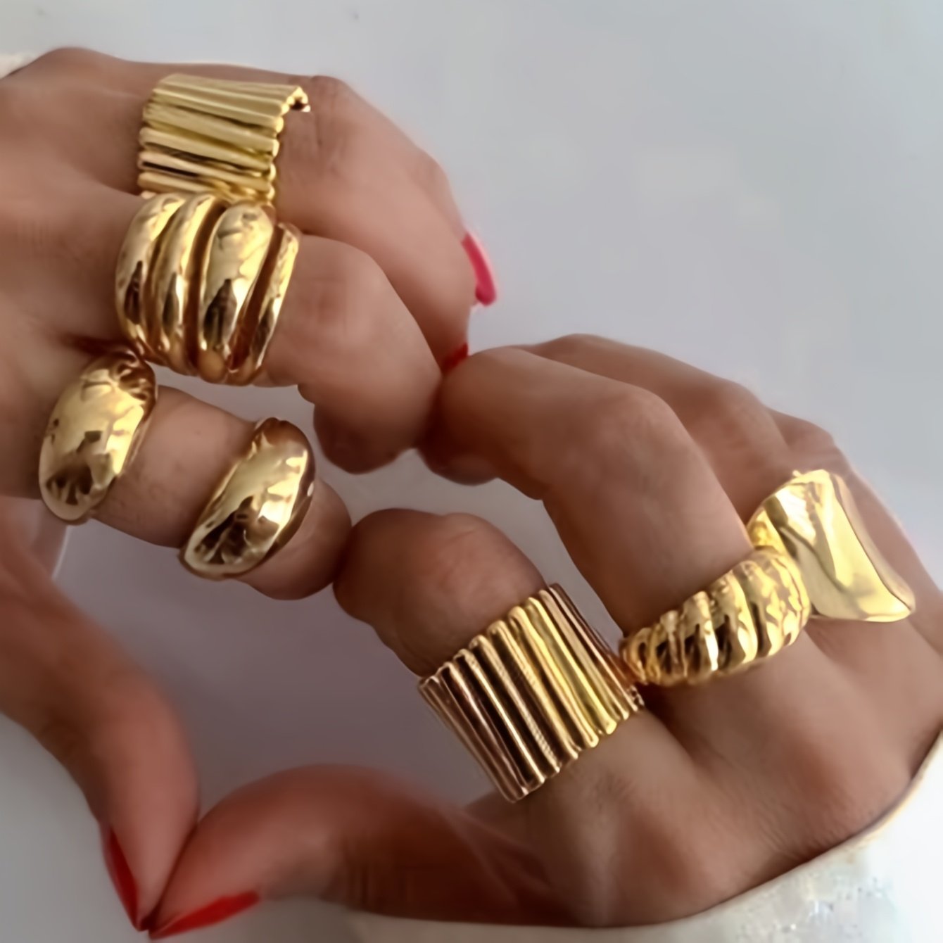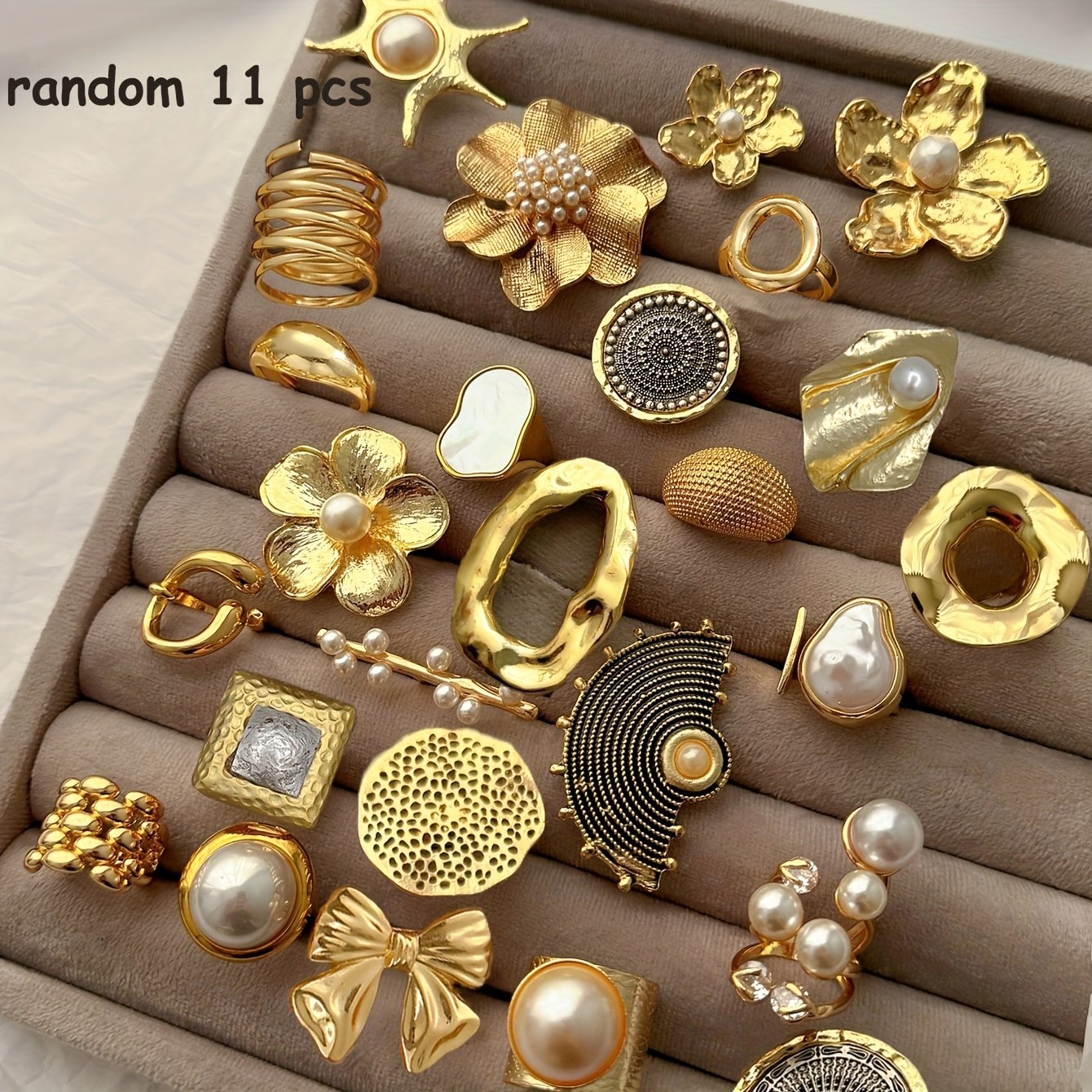 Conjunto de 15/11/7 Anéis Vintage Elegantes Em Estilo Boêmio Com Laço Falso Exagerado Em Metal, Formato Quadrado, Semicírculo e Linhas Irregulares Geométricas. Anéis Vazados Elegantes e Personalizados para Mulheres, Ideais para Férias de Verão, Festas, Encontros, Uso Diário e Aniversários.