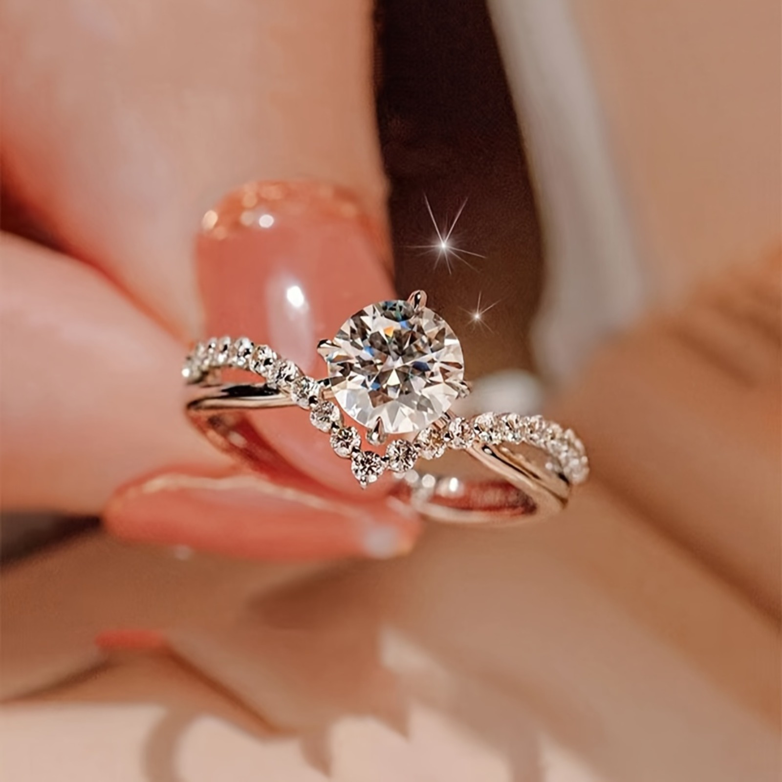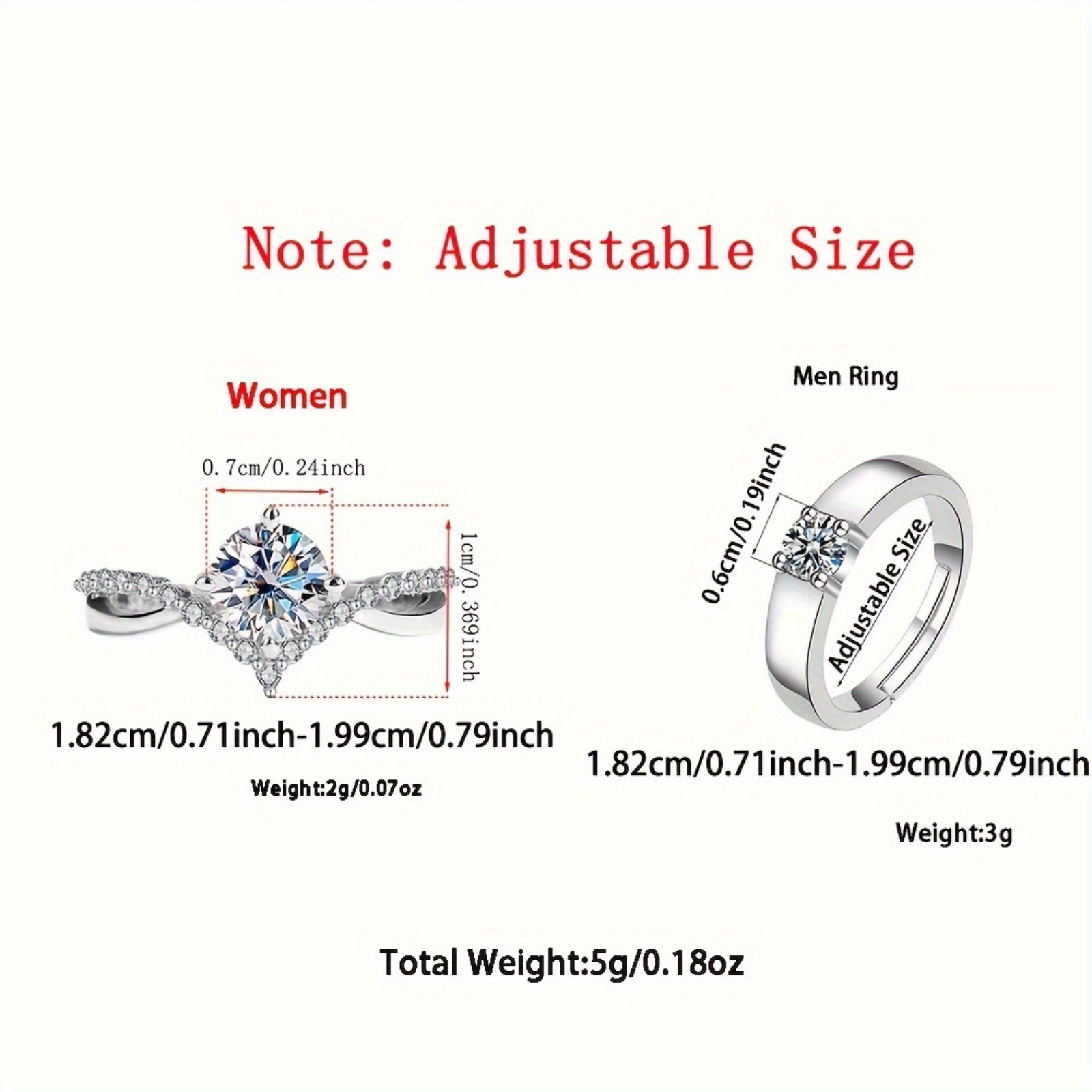 Conjunto de 2 Anéis de Casamento de Zircônia Sintética Cúbica - Faixa Aberta Ajustável, Anéis de Noivado para Casais, Traje Casual Perfeito para Festa, Joias da Moda.