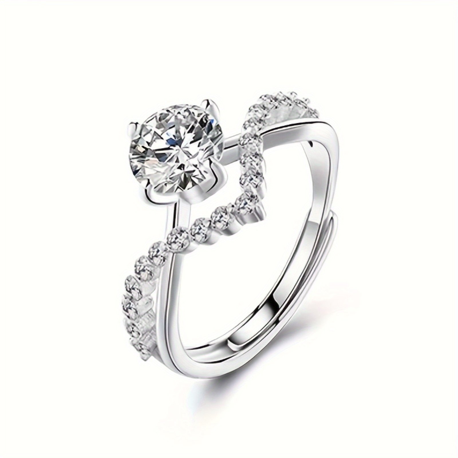 Conjunto de 2 Anéis de Casamento de Zircônia Sintética Cúbica - Faixa Aberta Ajustável, Anéis de Noivado para Casais, Traje Casual Perfeito para Festa, Joias da Moda.