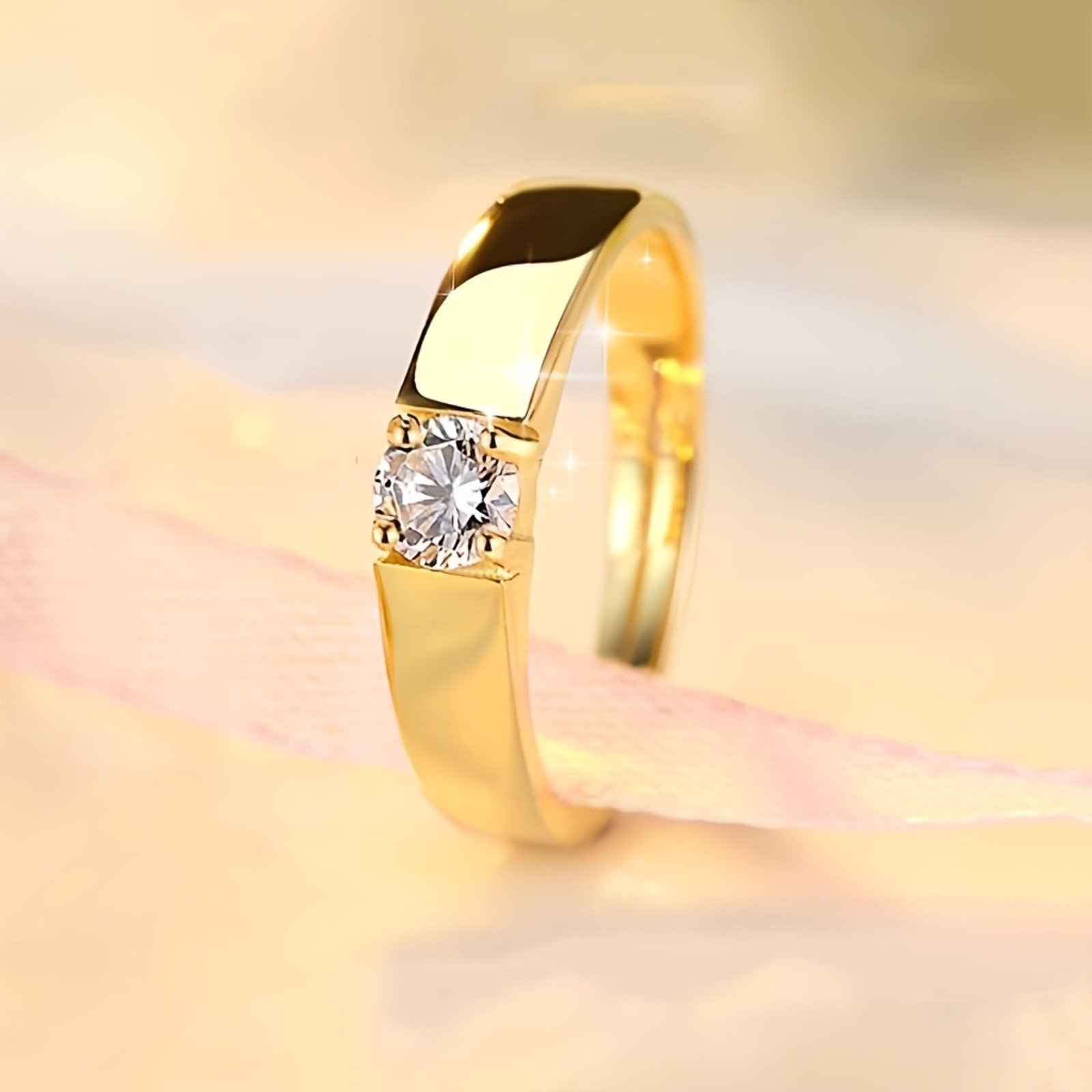 Conjunto de 2 Anéis de Casamento de Zircônia Sintética Cúbica – Faixa Aberta Ajustável, Anéis de Noivado para Casais, Traje Casual Perfeito para Festa, Joias da Moda.