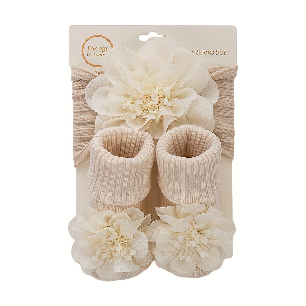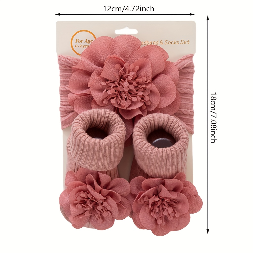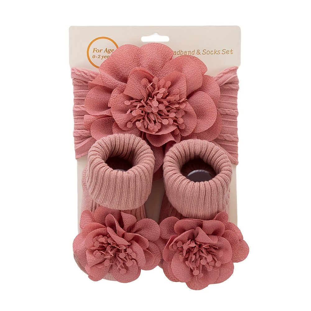 Início Vestuário Infantil / Juvenil Conjunto de 2 Faixas de Cabelo Com Flores Grandes e Renda para Bebês, Meias Longas Com Tornozeleira para 0-12 Meses, Meias Elásticas Largas, Acessórios para Fotografia Infantil.