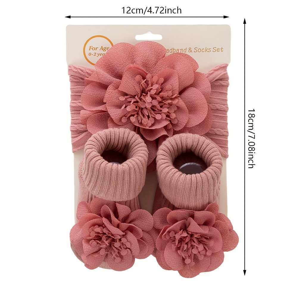 Conjunto de 2 Faixas de Cabelo Com Flores Grandes e Renda para Bebês, Meias Longas Com Tornozeleira para 0-12 Meses, Meias Elásticas Largas, Acessórios para Fotografia Infantil.