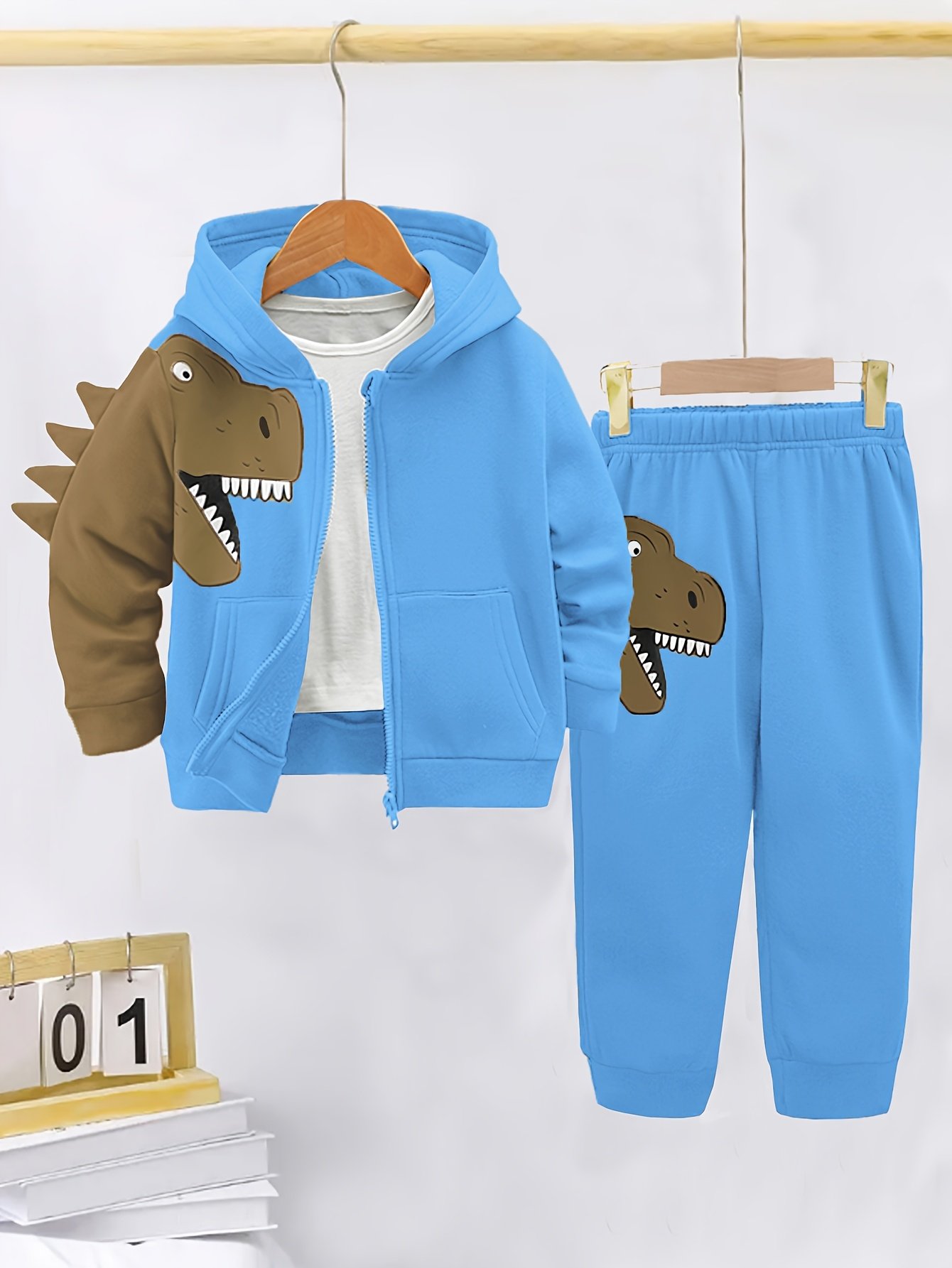 Especificações: Faixa Etária Aplicável: 12 Anos ou Menos Pessoas Aplicáveis: Meninos Composição da Calça: 100% Poliéster Detalhes: Zíper Tecido: Elasticidade Média Tipo de Ajuste: Regular Material: Poliéster Instruções de Uso: Lavagem à Máquina ou Lavagem a Seco Profissional Estampa: Dinossauros Tipo de Impressão: Impressão de Posicionamento Estação: Primavera / Verão / Inverno / Outono Transparência: Não Estilo: Casual Composição da Blusa: 100% Poliéster Método de Tecelagem: Tecido de Malha