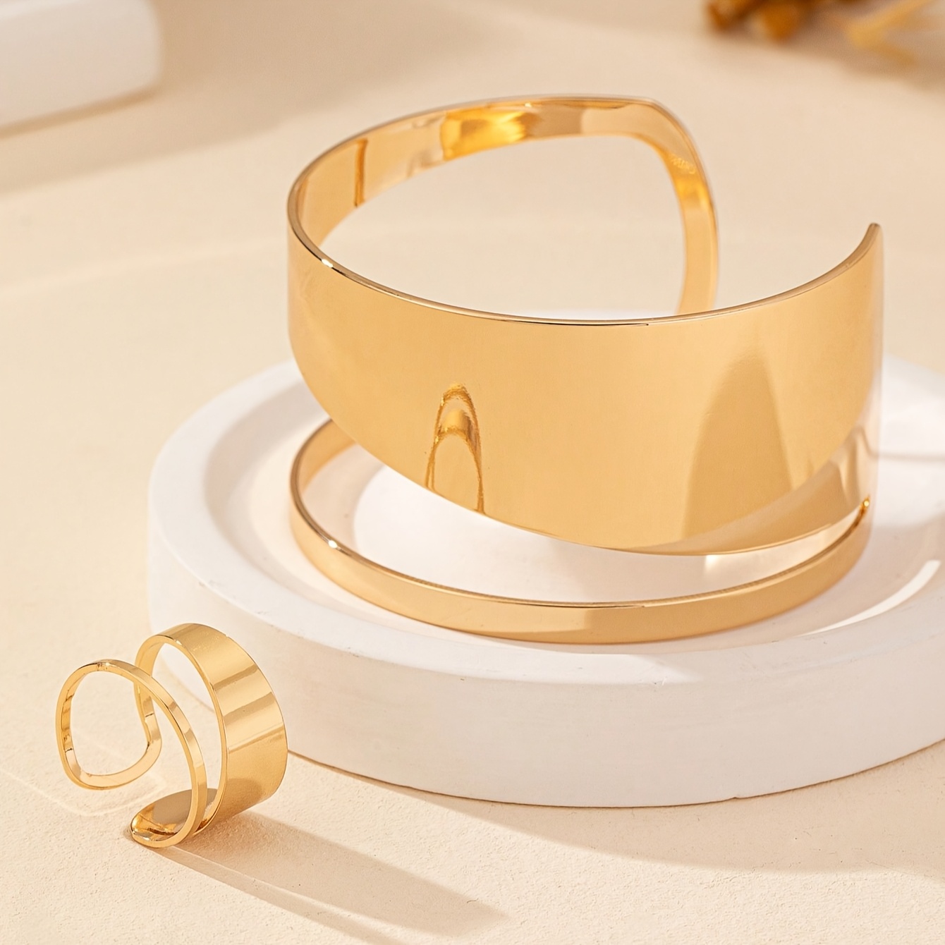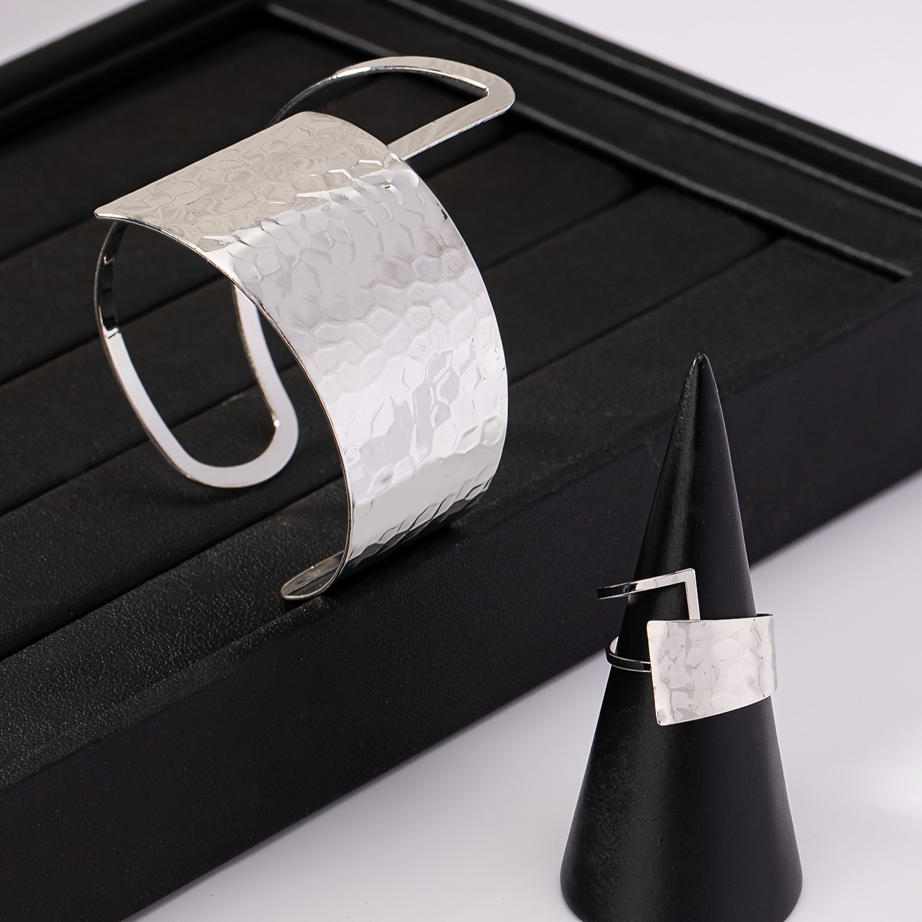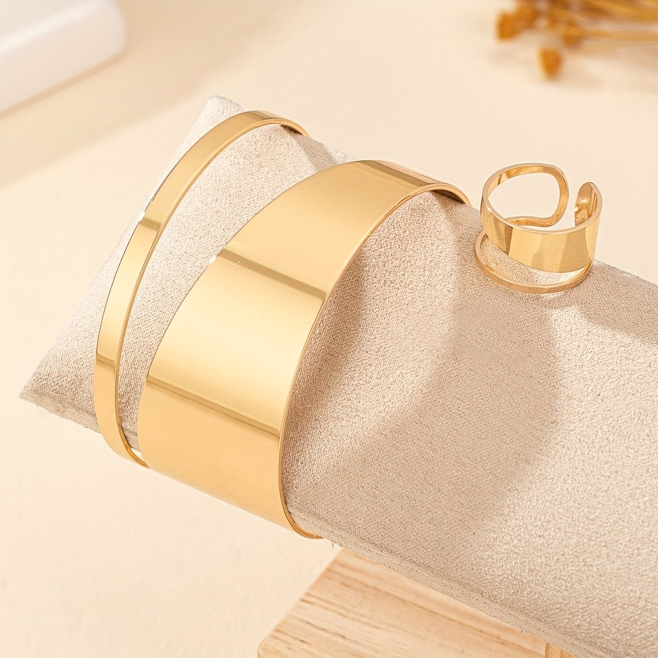 Início Vestuário e Acessórios Bijouterias Conjunto de 2 Peças de Pulseiras e Anéis Abertos Com Textura de Liga Boêmia para Uso Diário Feminino.