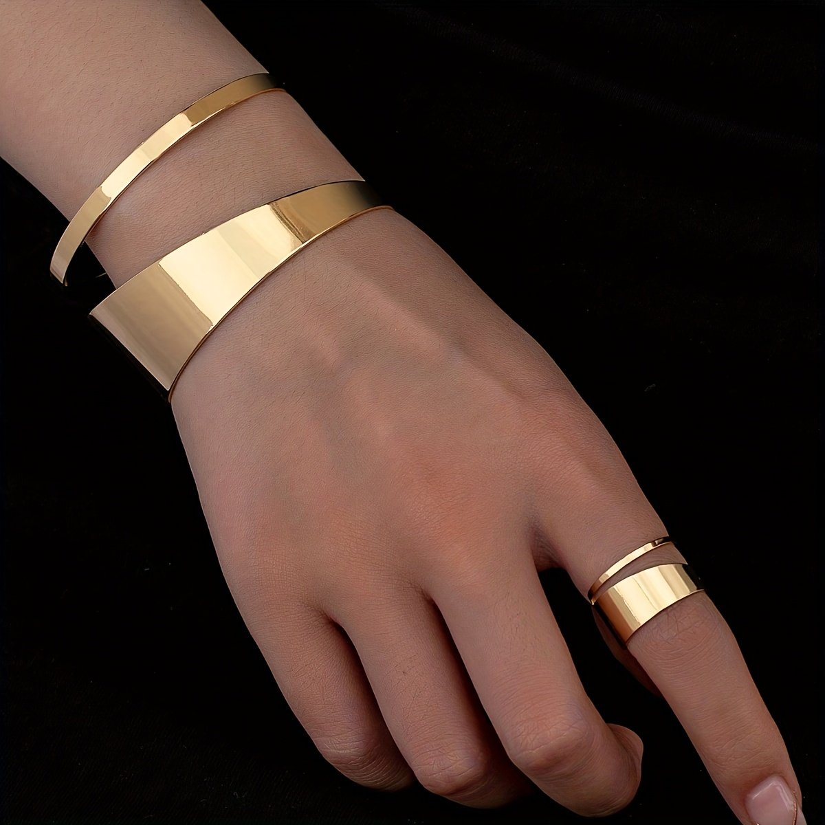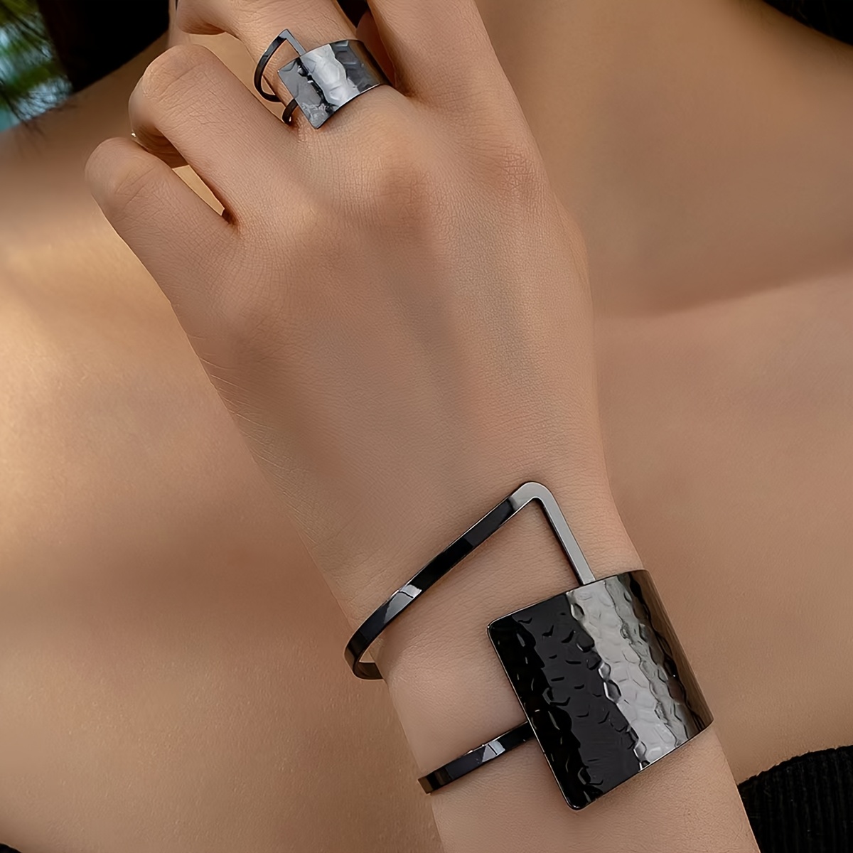 Conjunto de 2 Peças de Pulseiras e Anéis Abertos Com Textura de Liga Boêmia para Uso Diário Feminino.