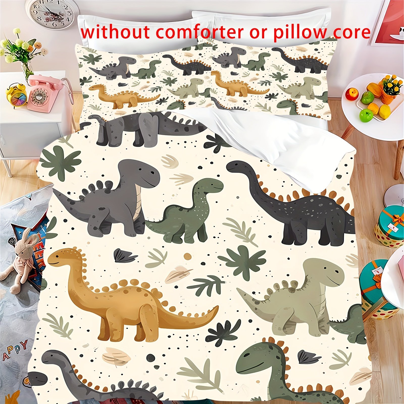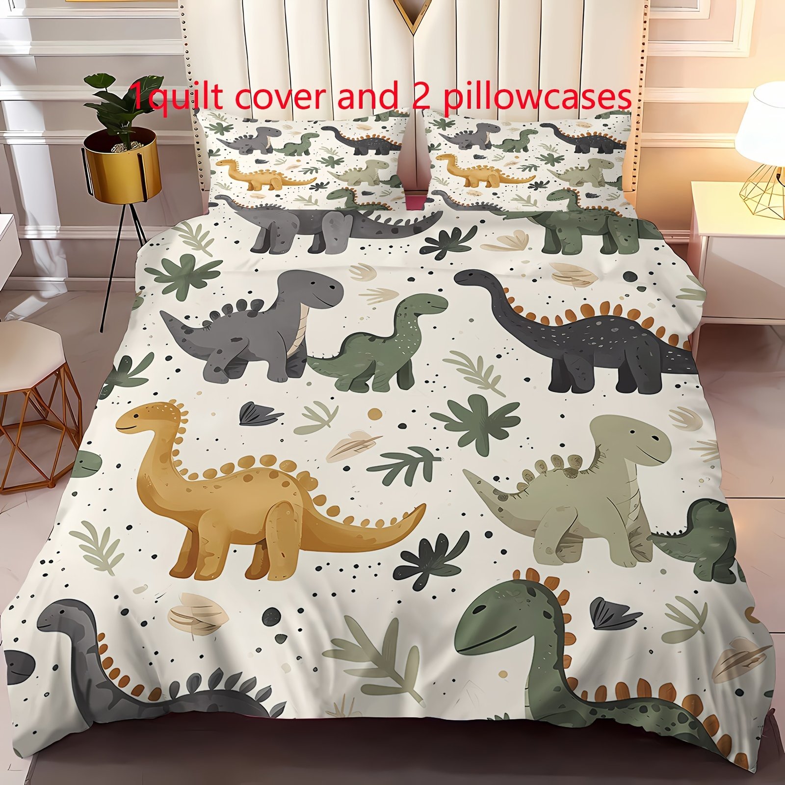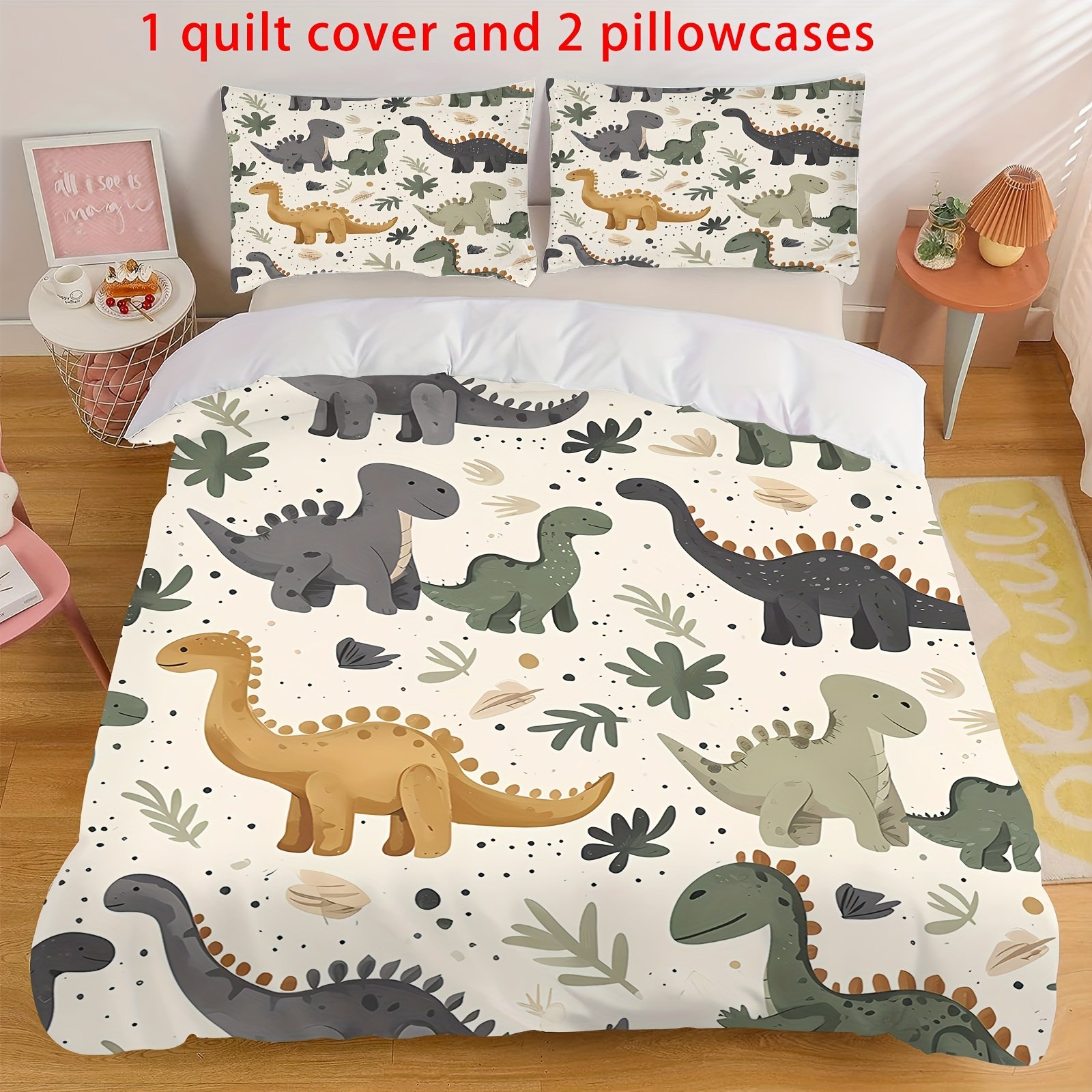 Conjunto de 3 Peças, Capa de Edredom Original de Alta Qualidade Com Estampa de Dinossauro Em Desenho Animado, Macia e Confortável (Ideal para Quarto e Quarto de Hóspedes) (1 Capa de Edredom + 2 Fronhas, Sem Núcleo).