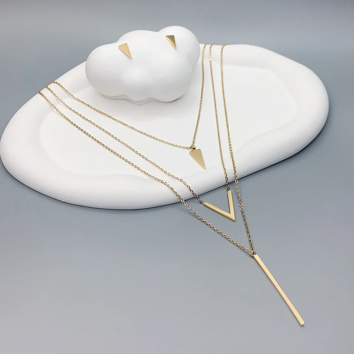 Conjunto de 3 Peças Novo Geométrico Em Forma de V de Aço Inoxidável Feminino.