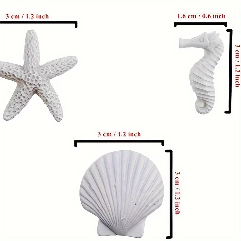 Conjunto de 6 Peças de Estatuetas Náuticas de Resina - Estrela do Mar, Cavalo-Marinho, Concha, Estatuetas Colecionáveis ​​para Aquário, Decoração.