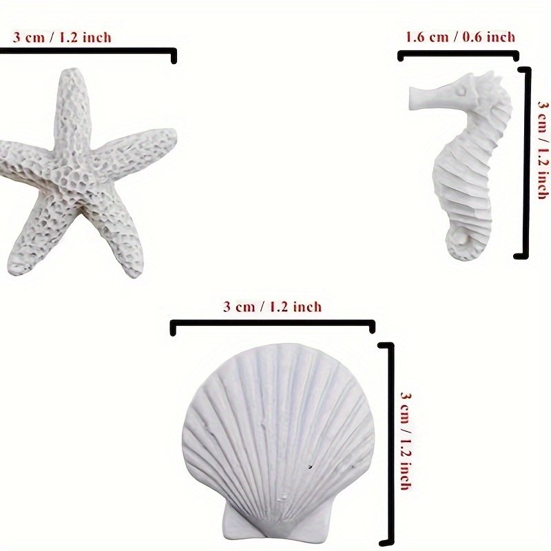 Conjunto de 6 Peças de Estatuetas Náuticas de Resina - Estrela do Mar, Cavalo-Marinho, Concha, Estatuetas Colecionáveis ​​para Aquário, Decoração.