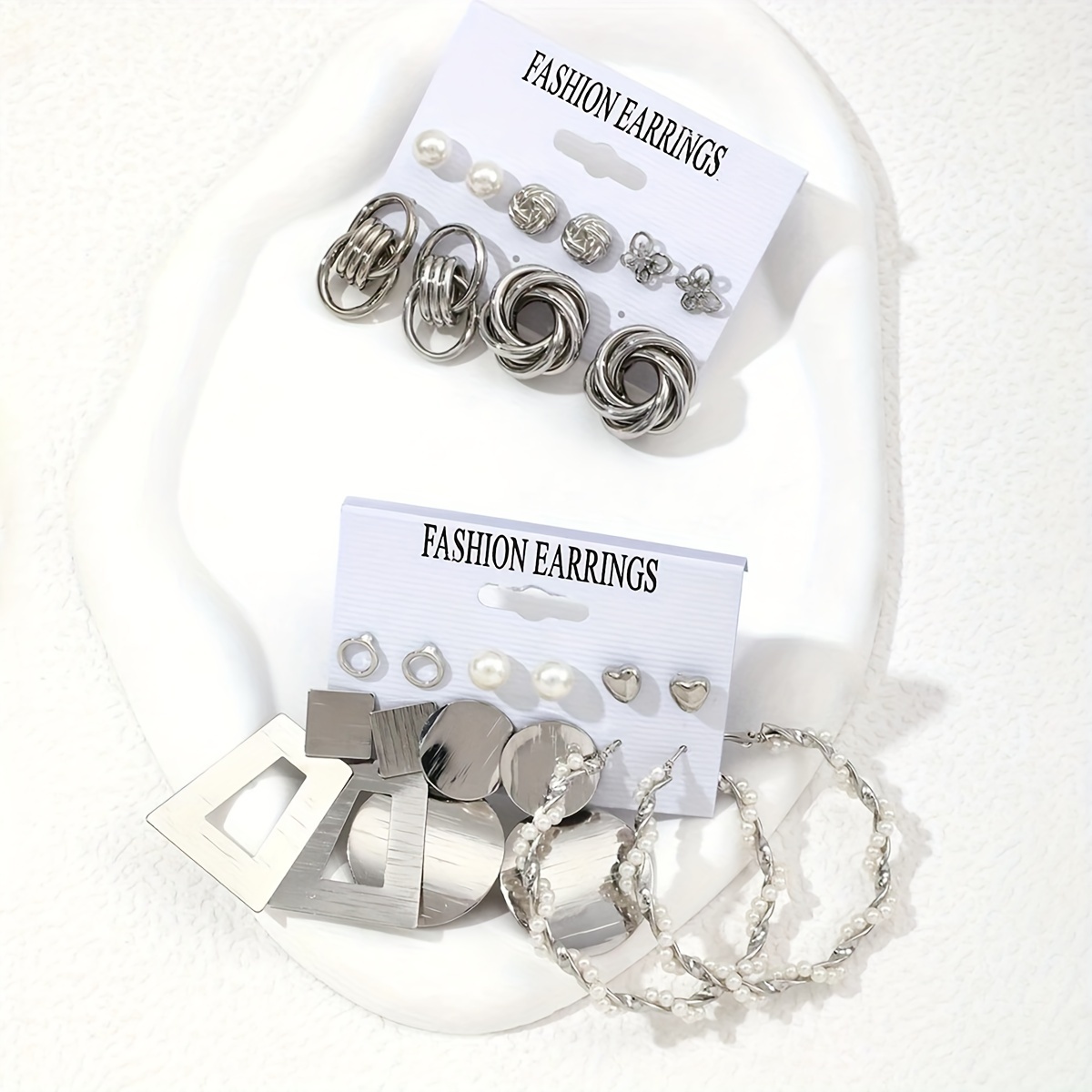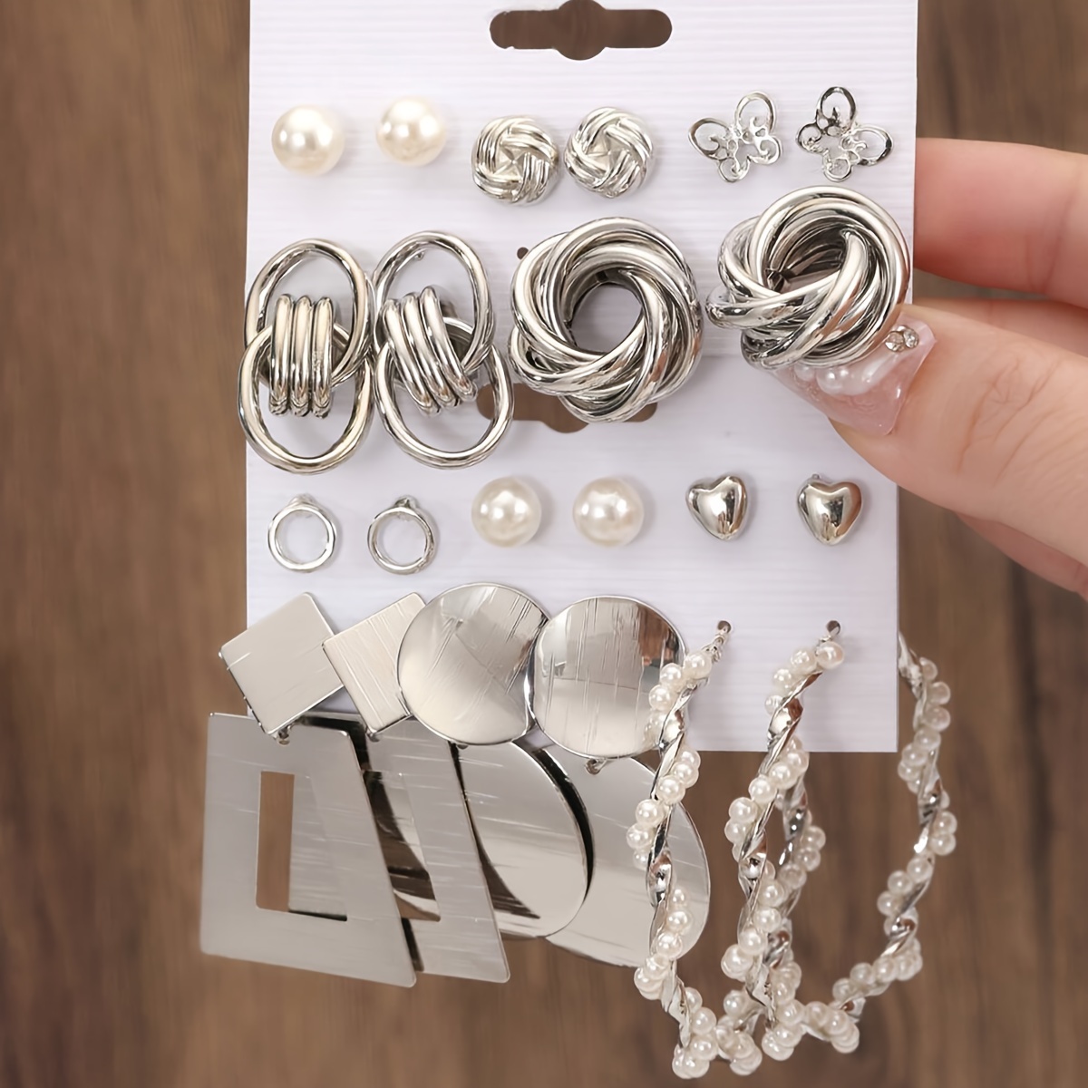 Conjunto de Brincos de Pérolas Artificiais Estilo Europeu e Americano, Estilo Europeu e Americano, Estilo Borboleta, Flor, Torção, Polígono, Brincos de Orelha, Festa Feminina, Viagem, Feriado, Compromisso Essencial.