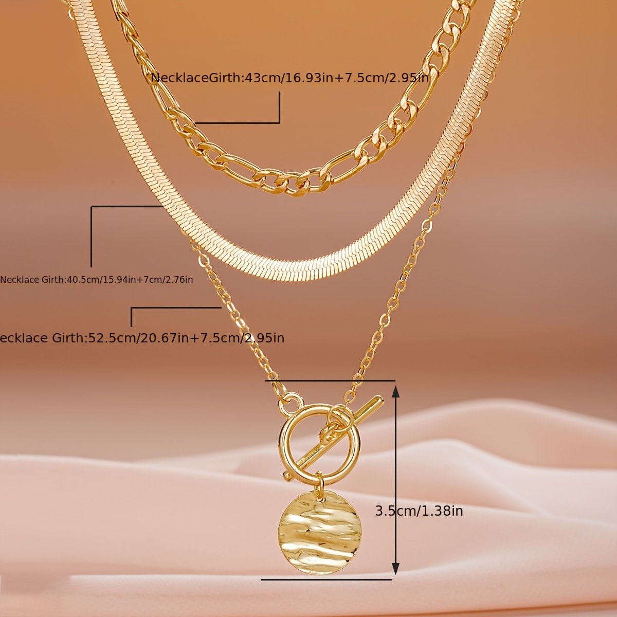 Conjunto de Colar Feminino Em Camadas Com 3 Peças, Corrente Simples Em Formato de Osso de Cobra Laminada Com Pingente de Moeda, Liga de Zinco, Acessório para Férias e Encontros Casuais, Combinação Versátil.