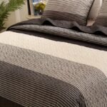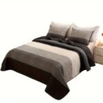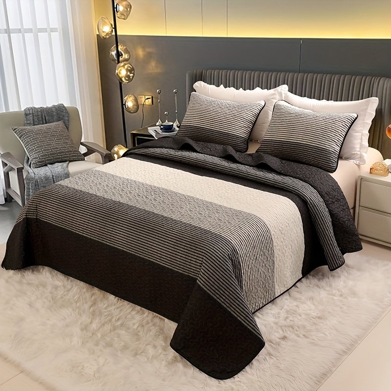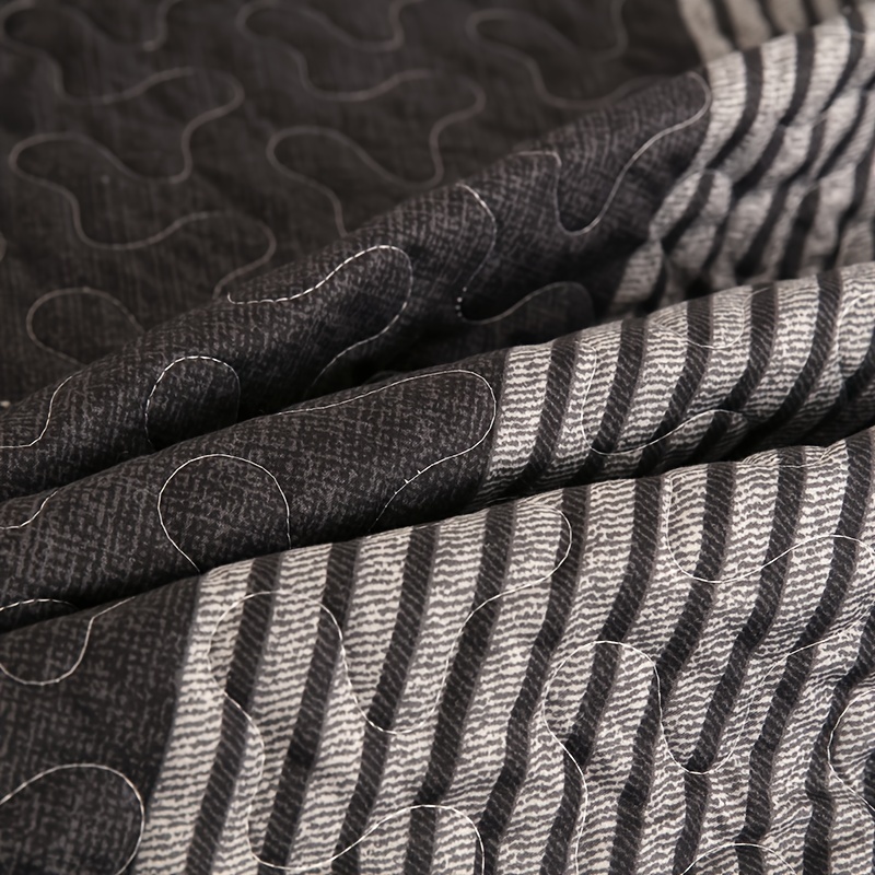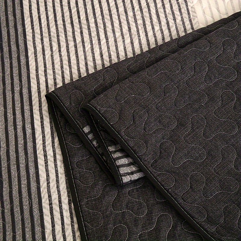 Início Utilitários do Lar Roupa De Cama Conjunto de Colcha Escovada de 3 Peças (1 Colcha + 2 Fronhas, Sem Enchimento) – Colcha Acolchoada Macia e Quente Com Listras Pretas, Cinzas e Brancas, Perfeita para Decoração de Quarto e Quarto de Hóspedes.