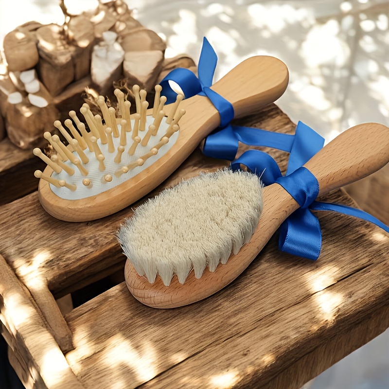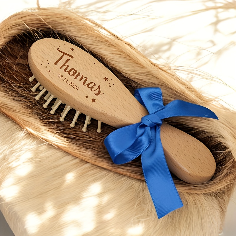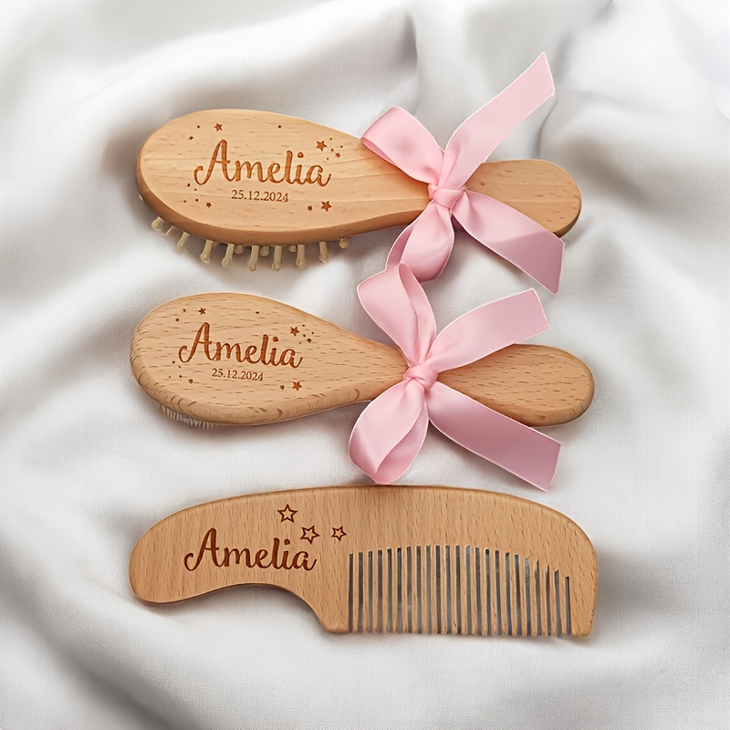 Conjunto de Pentes de Cabelo de Madeira Personalizados e Gravados, 1/3 Peças – Nome e Data Personalizados, Design Elegante de Laço Rosa, Cerdas de Nylon Duráveis, Presente Ideal para o Dia das Mães para Recém-nascidos e Mães, Acessório de Banho Exclusivo para Lembrança, Acessórios de Cabelo.