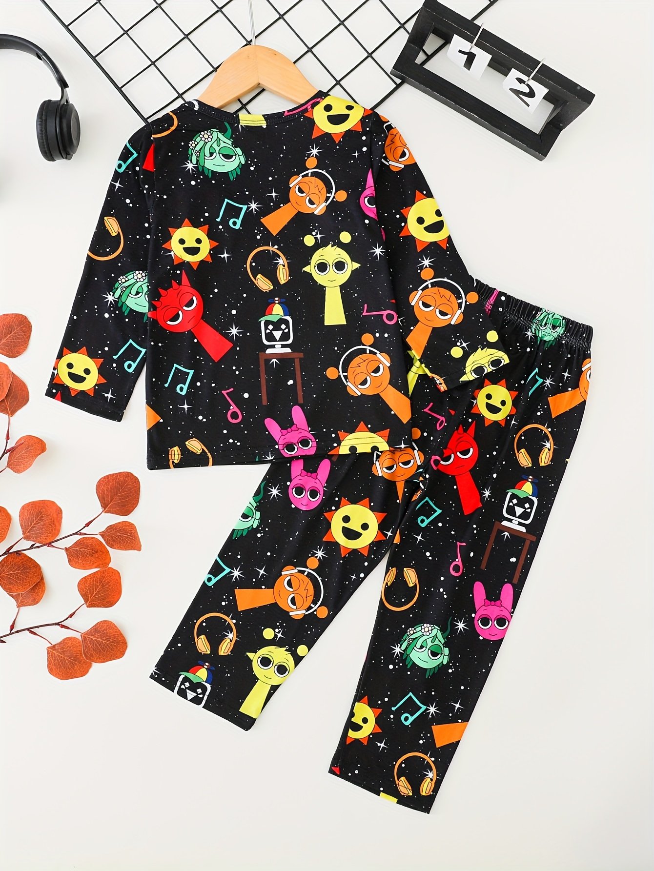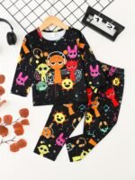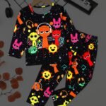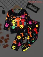 Conjunto de Pijama Neon p/ Meninos Com 2 Peças Que Brilham no Escuro, Estrela 3d e Estampa de Animal ( gatos / cachorros / ursos ) – Roupa de Dormir Reativa Resistente a Chamas para Festa de Inverno e Roupa de Cama Aconchegante, Lavável à Máquina.