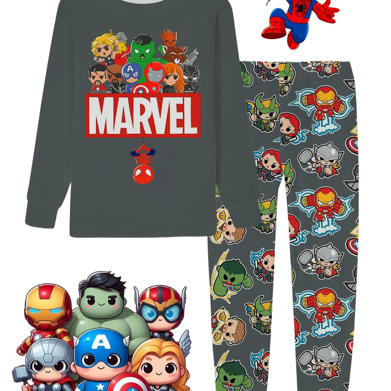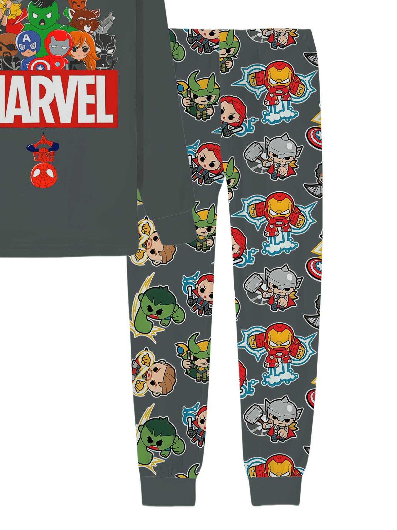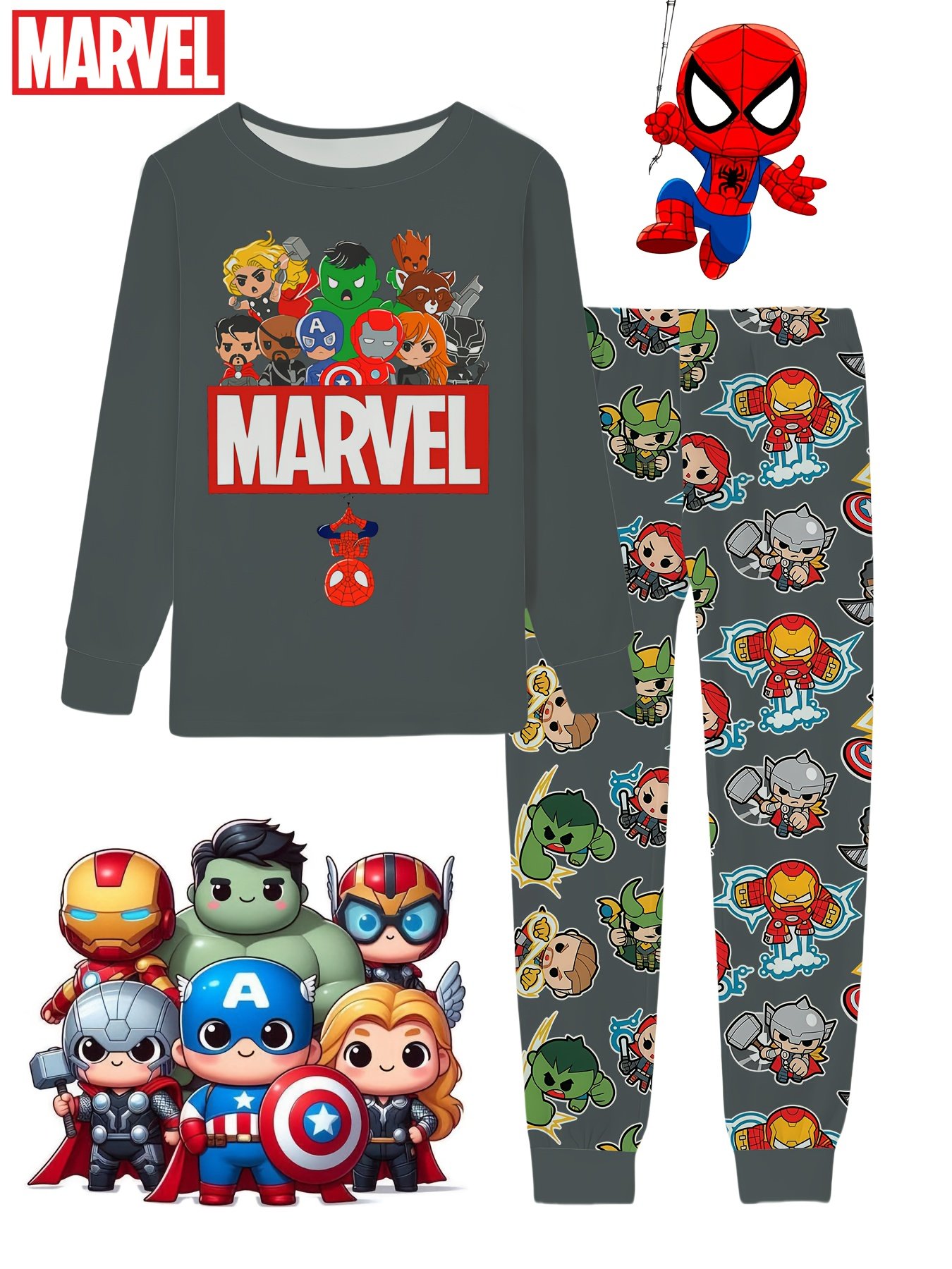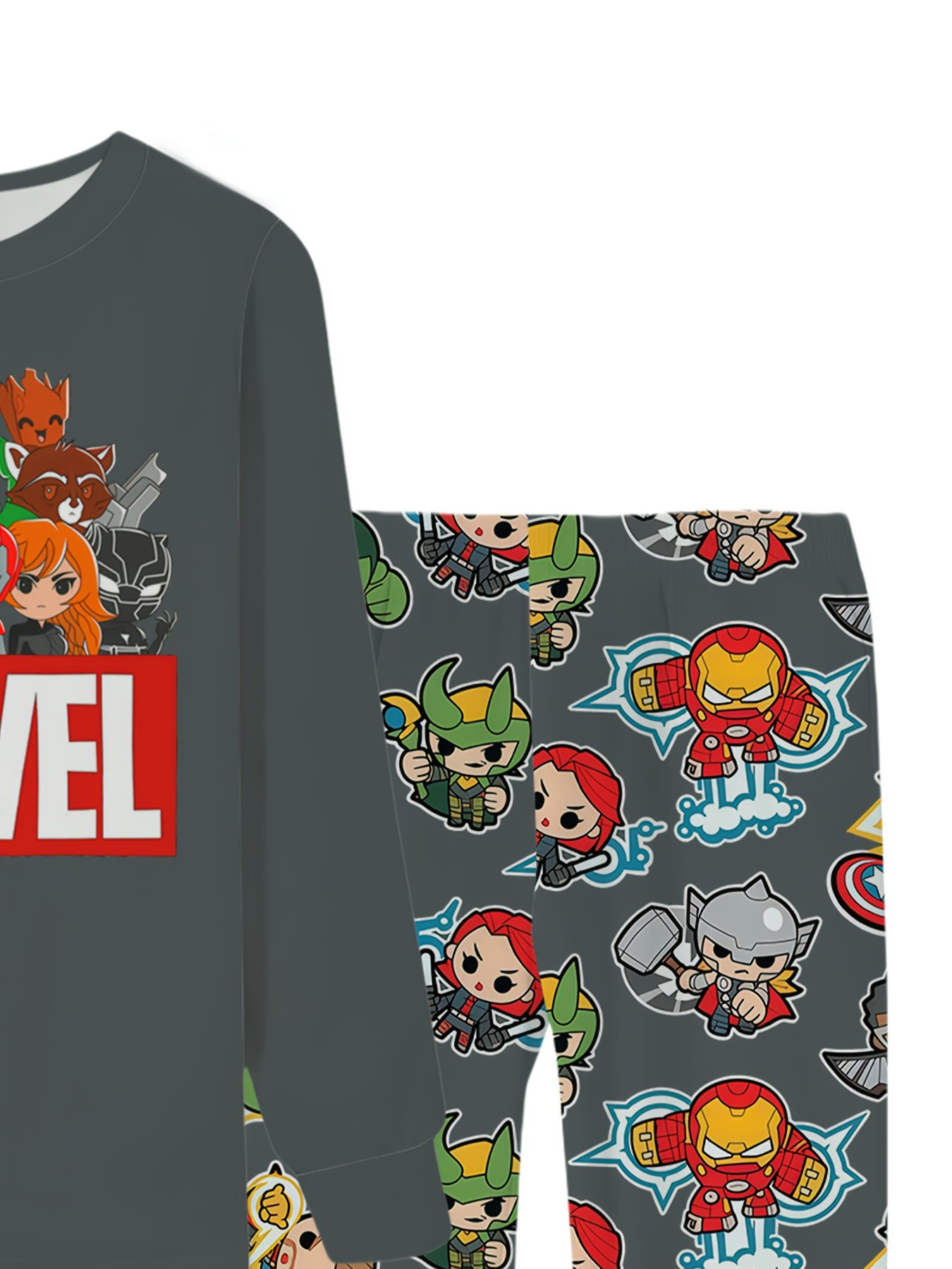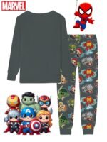 Conjunto de Pijama Primavera / Verão / Inverno / Outono para Meninos da Marvel de 2 a 9 Anos, Blusa Com Personagens dos Vingadores da Versão Q, Logotipo Atraente da Marvel e Calças Combinando Cheias dos Mesmos Designs Fofos, Macio e Confortável para Dormir ou Relaxar, Conjunto de Pijama para Meninos, Personagem.