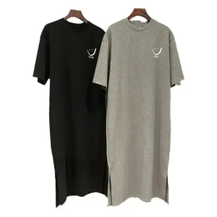 Verão Feminino Novo Vestido Camiseta de Manga Curta Comprimento Médio Sobre o Joelho Vestido.