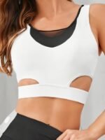 Início Vestuário Feminino Conjuntos Conjunto de Roupas Esportivas Femininas para Emagrecimento – Sutiã Esportivo Sexy com Painel de Malha e Leggings de Cintura Alta